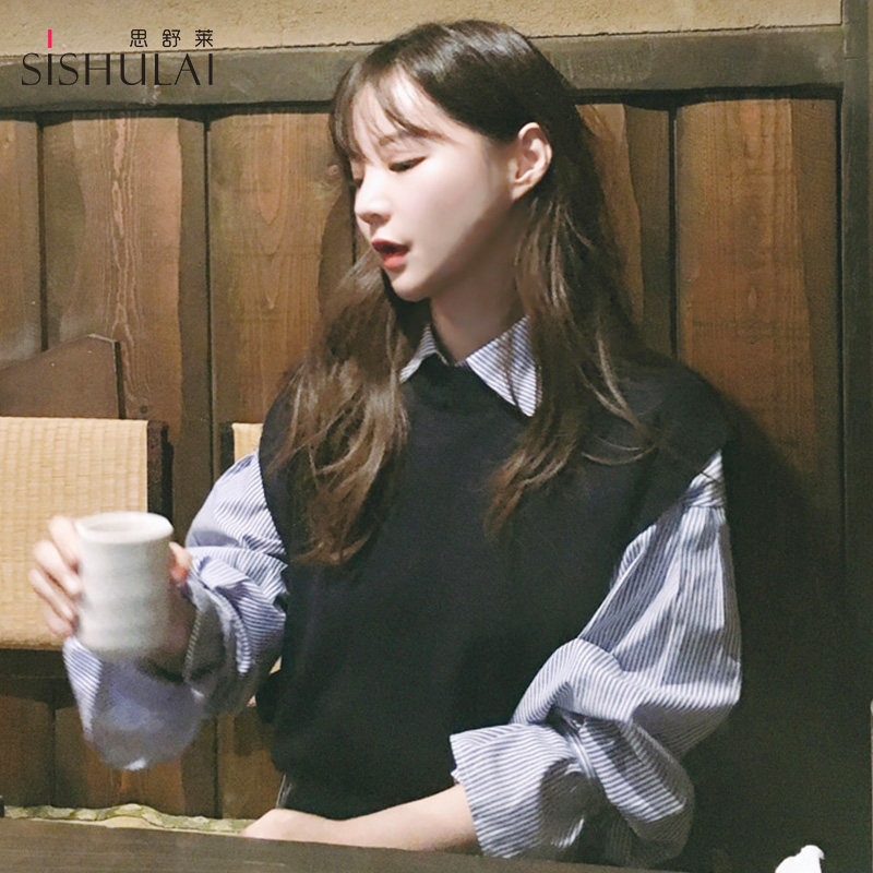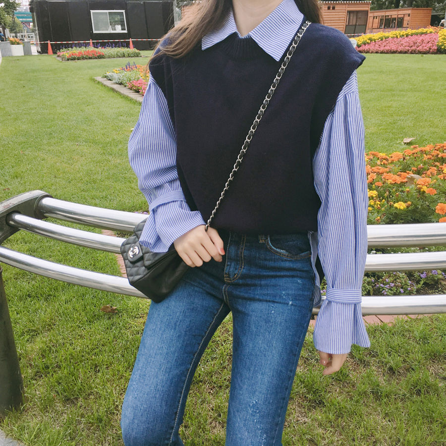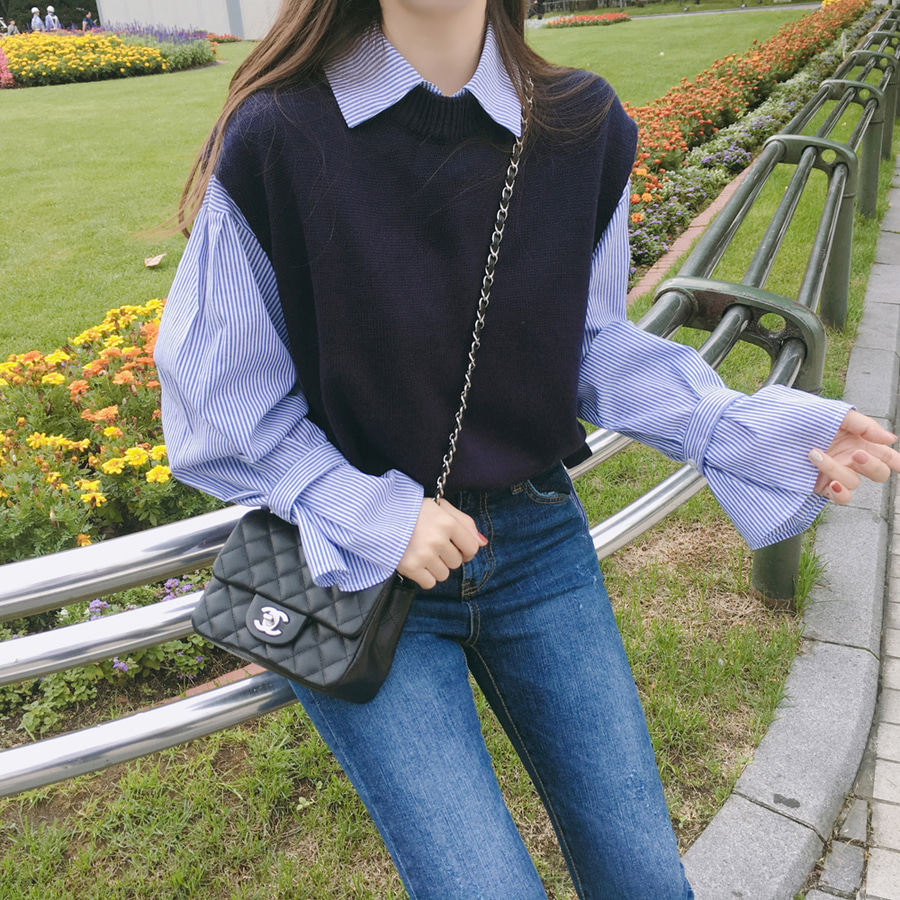 Демисезонный комплект, свитер, жилет, рубашка, в стиле Шанель, в корейском стиле, изысканный стиль