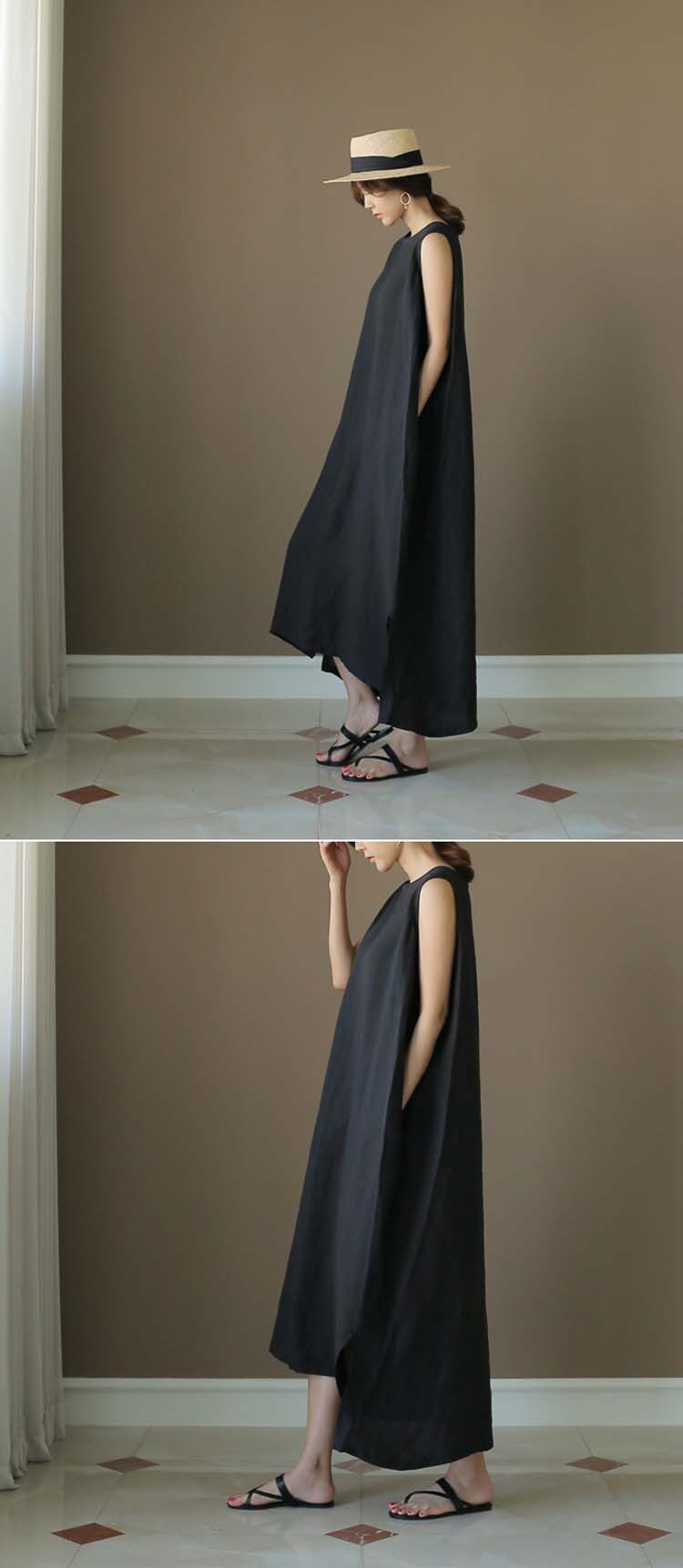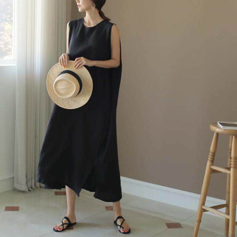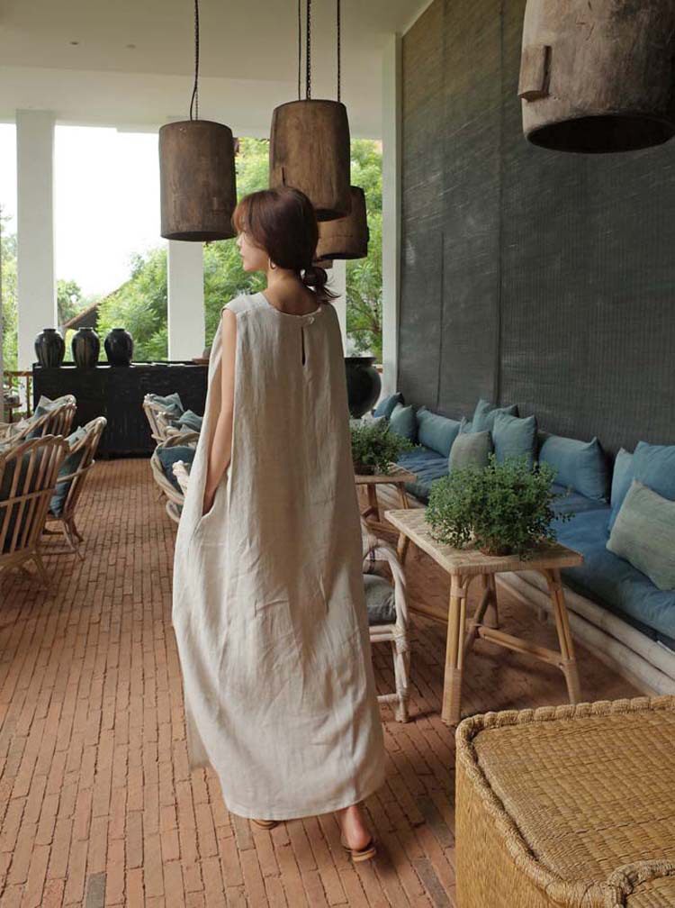 Платье без рукавов, медная длинная юбка без рукавов, из хлопка и льна, оверсайз