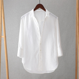 Летняя тонкая дышащая рубашка, европейский стиль, 2024 года, из хлопка и льна