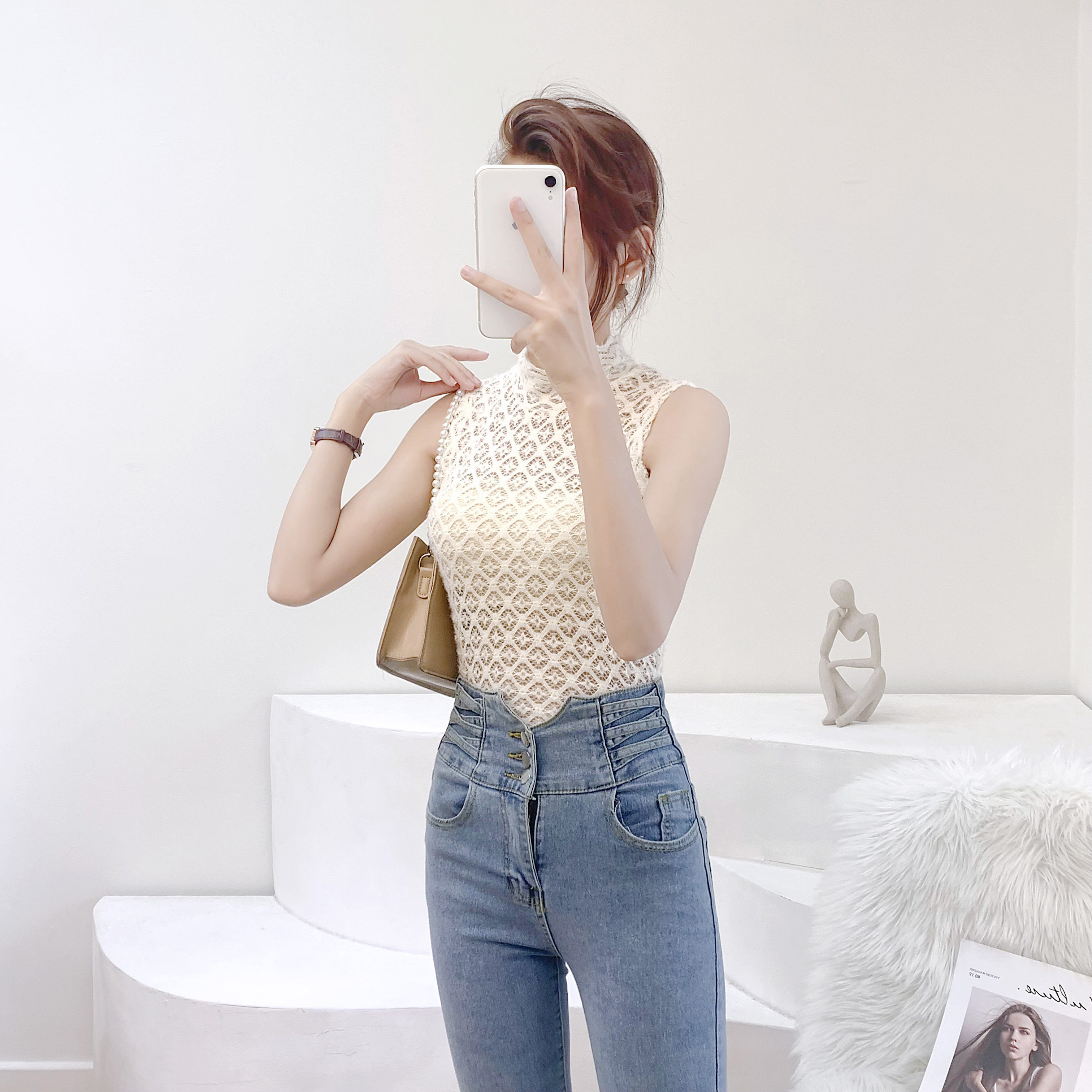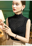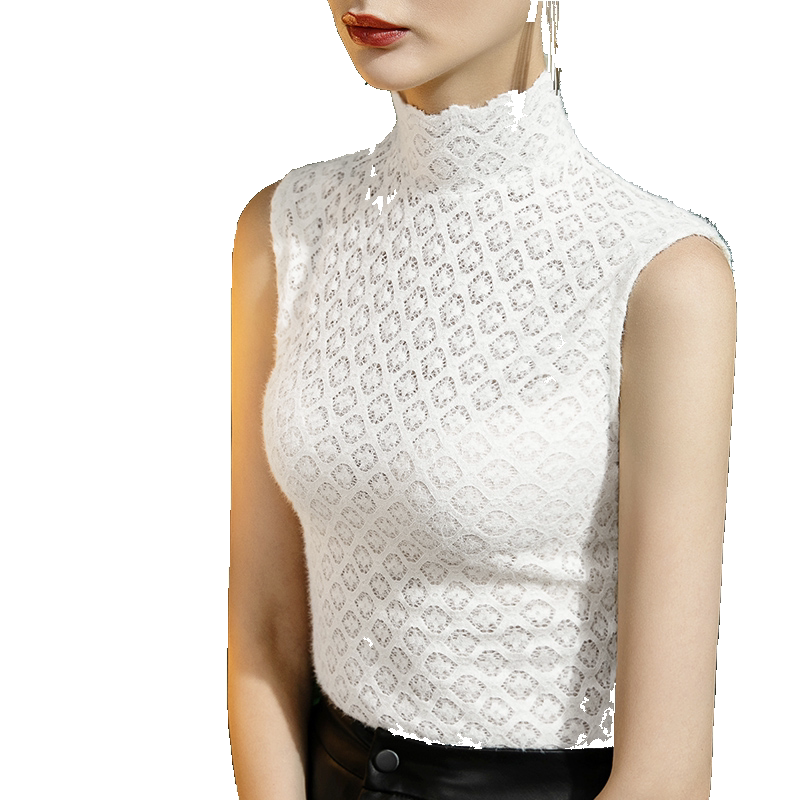 Демисезонный кружевной шелковый приятный телу фальшивый воротник, майка топ без рукавов, коллекция 2022, с рукавом