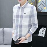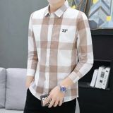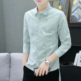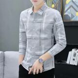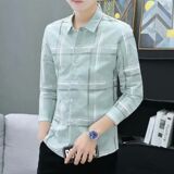 Демисезонная осенняя мужская трендовая рубашка, в корейском стиле, облегающий крой