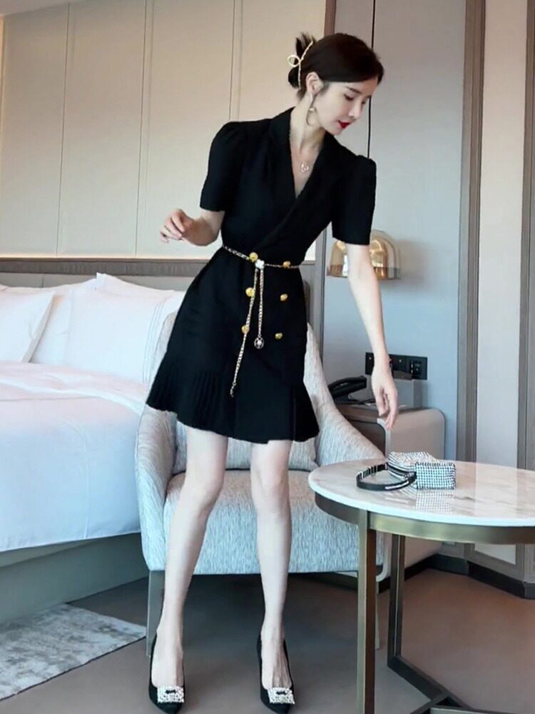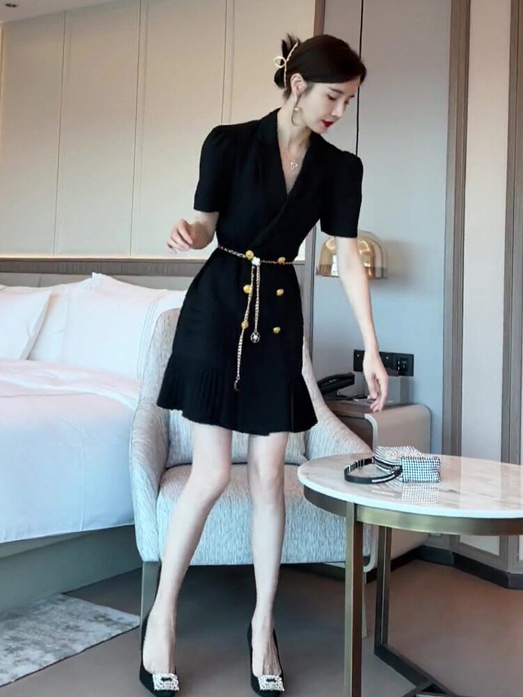 Черный пиджак классического кроя, летняя юбка, летнее платье, 2024 года, французский стиль, изысканный стиль