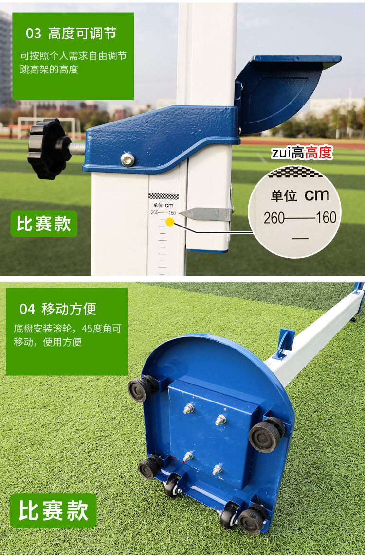 Алюминиевые сплавы прыгают с повышенным школьным стандартным прыжком, движущиеся колеса, которые могут подняться и прыгать высокие прыжки в высоту в высоких прыжках в высоту