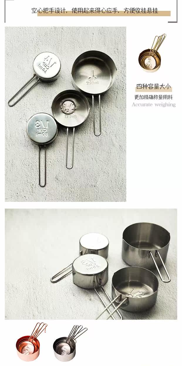 Брендовая мерная ложка из нержавеющей стали, комплект, сухое молоко, скандинавский стиль, нержавеющая сталь AISI 304, 4 шт