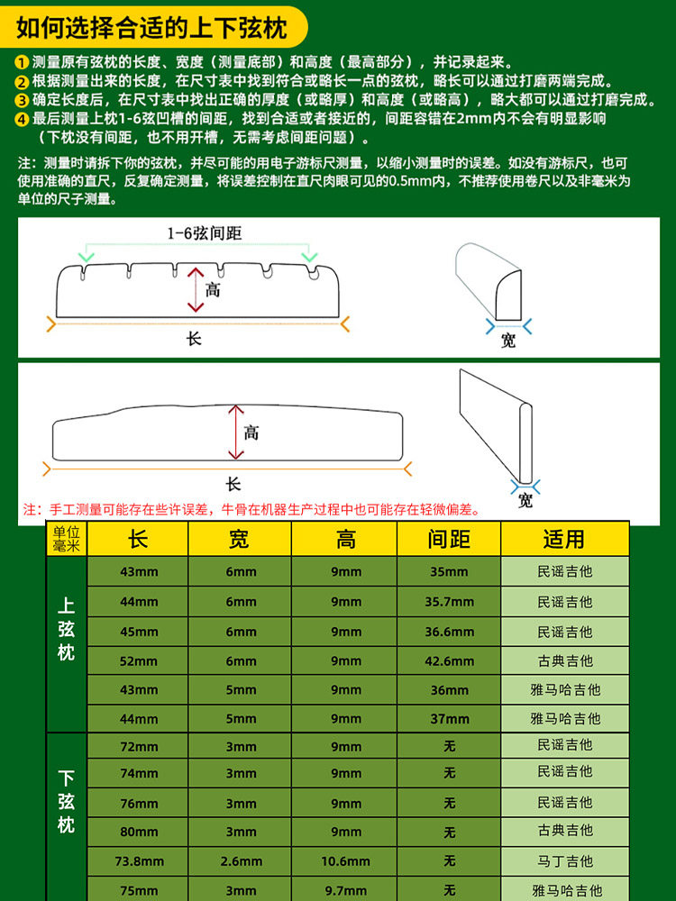 Гитарная подушка мост Ox Bone Sound подходит для Yamaha Folk Song Wood Classical Lower String Pillow Верхняя струнная подушка мост мост