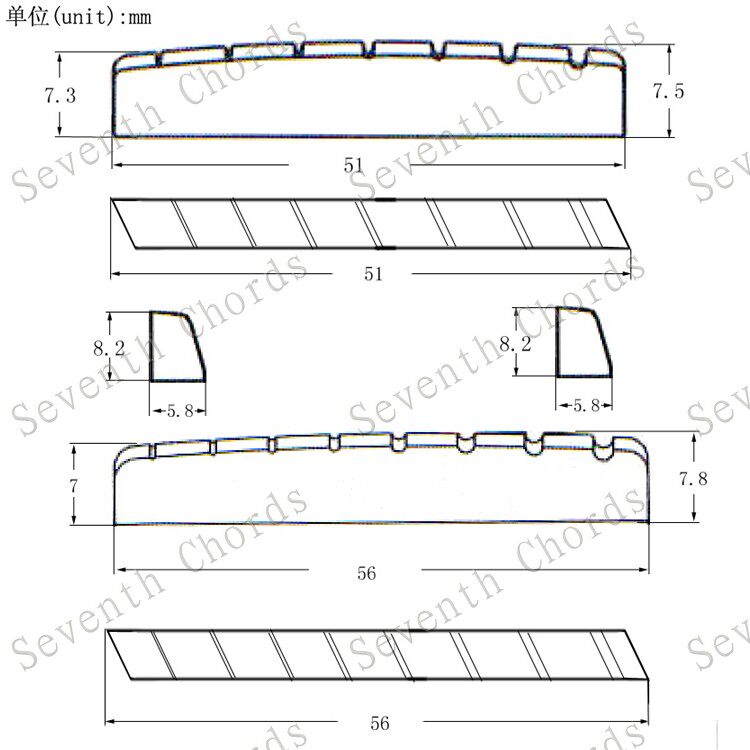 Пластиковый вентилятор 7 струна 8 струнная гитарная надушка на фортепианную подушку Семь струйных гитарных фортепианных мостовых мостов 7 Струковая подушка восемь струн
