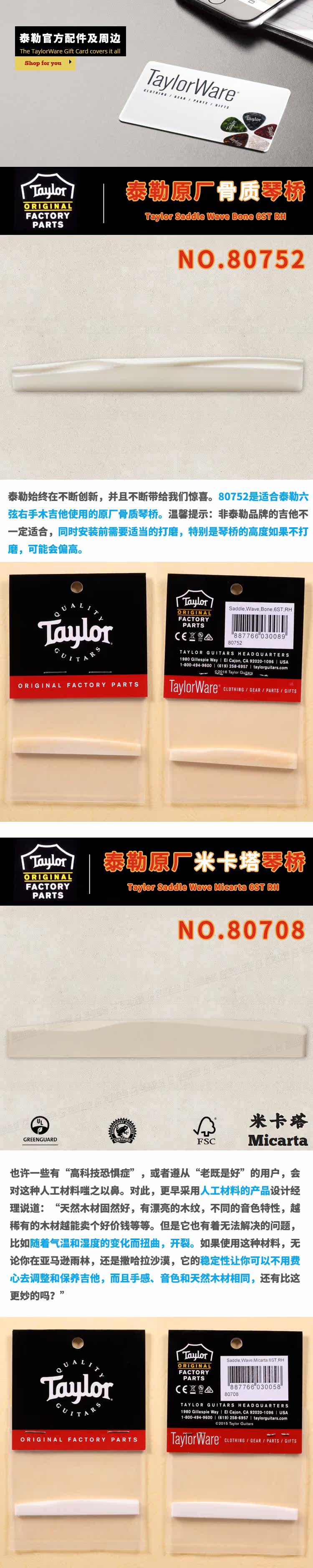 Красота сделана 80752 80708 Taylor Guitar Оригинальная специальная подушка для подушки кости маката мост