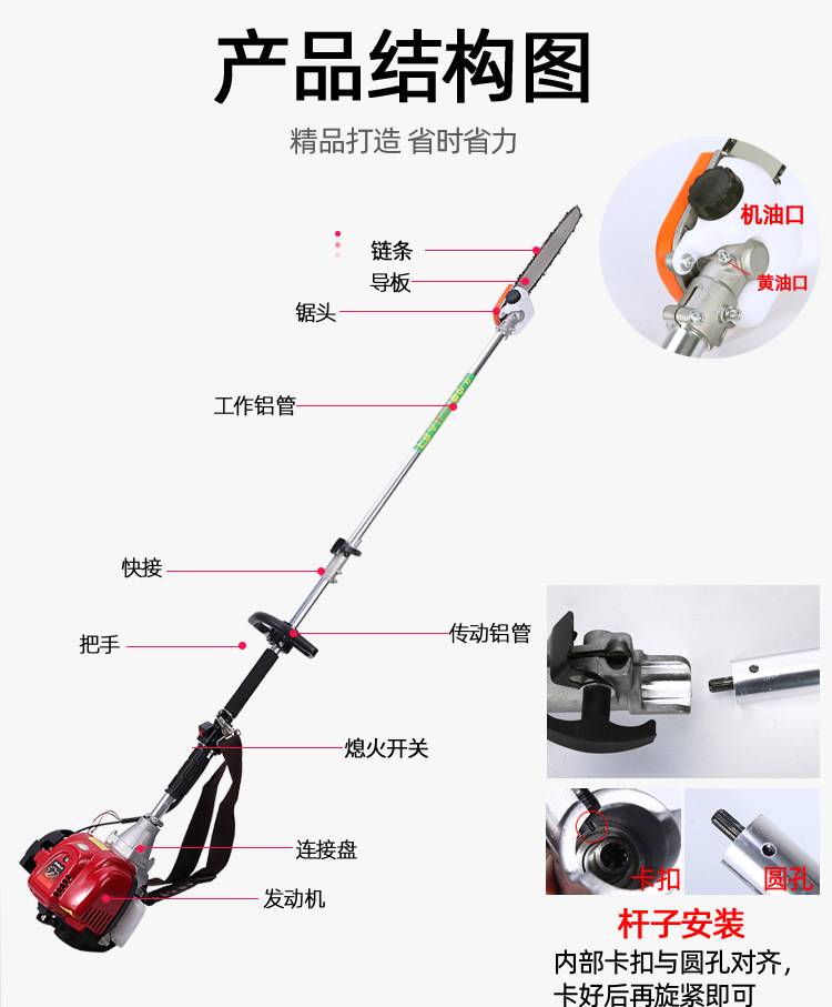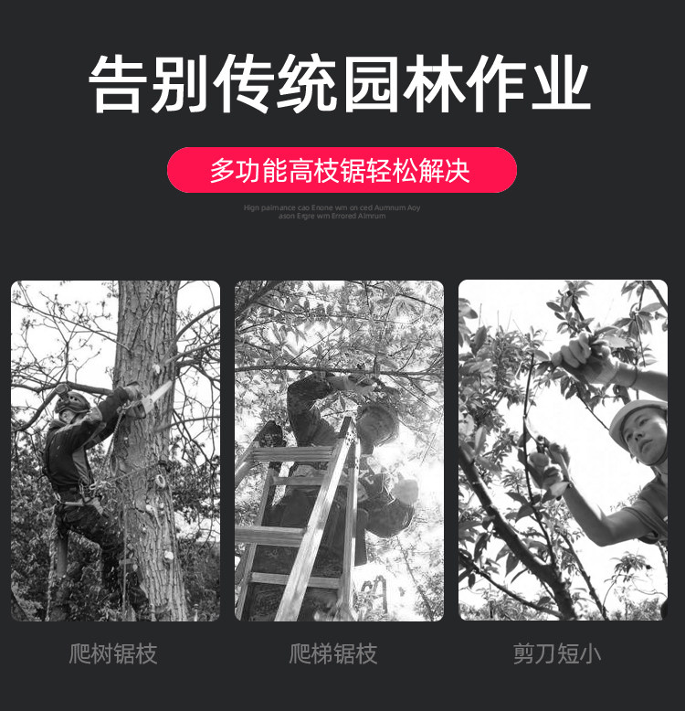 Объем использования: он подходит для обрезки и режущих ветвей, таких как яблоки, цитрусовые, каштаны, персики, груши и городское озеленение. Это простая работа и высокая эффективность работы.