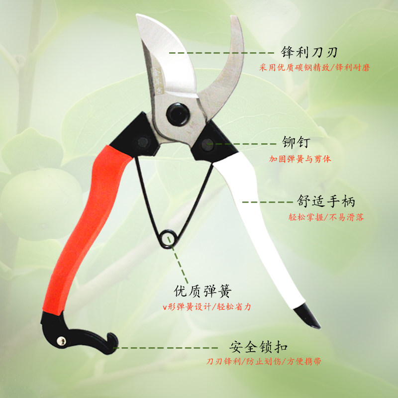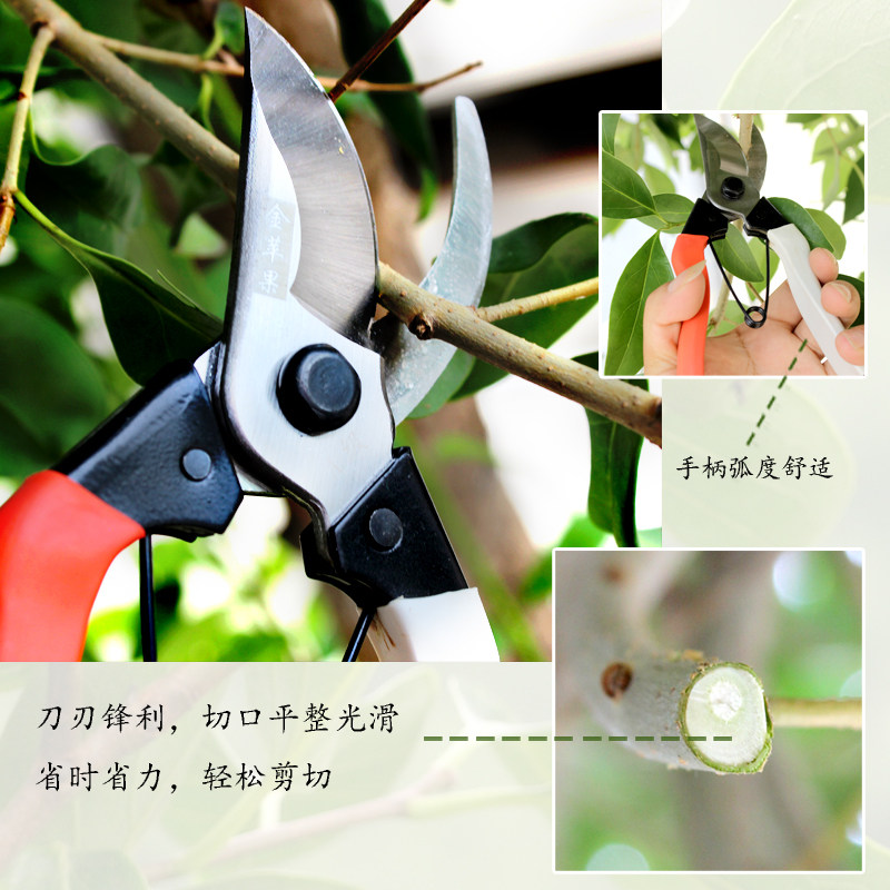 Золотые яблочные ветви, разрезать, разрезать, разрезать, нарезать фрукты, разрезать виноградные ветви и разрезать садовые порезы, ветви, нарезать садовые инструменты для садоводства