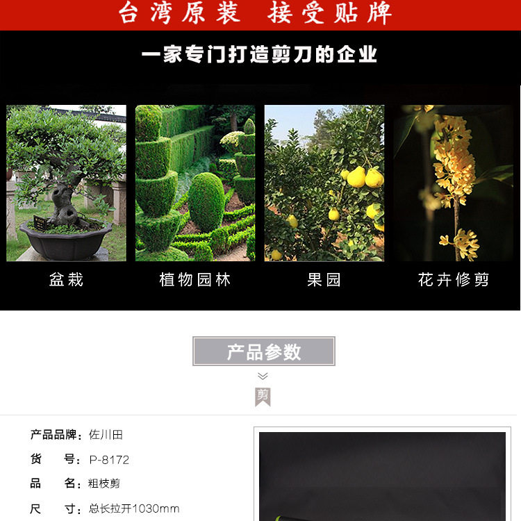 Импортированные полевые филиалы Sagawa, вырезать высокие ветви, ножницы, сохранить инструменты для садоводства.