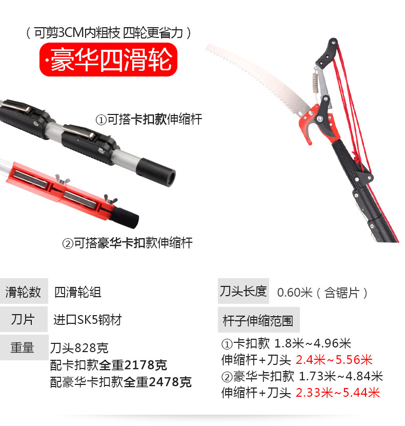 4,7 млн. Четырех-пулли Ультра-осветительное садоводство высокоэтапное устройство высокогорного сбора фруктов Телескопическое обрезка деревьев Высокие ветви