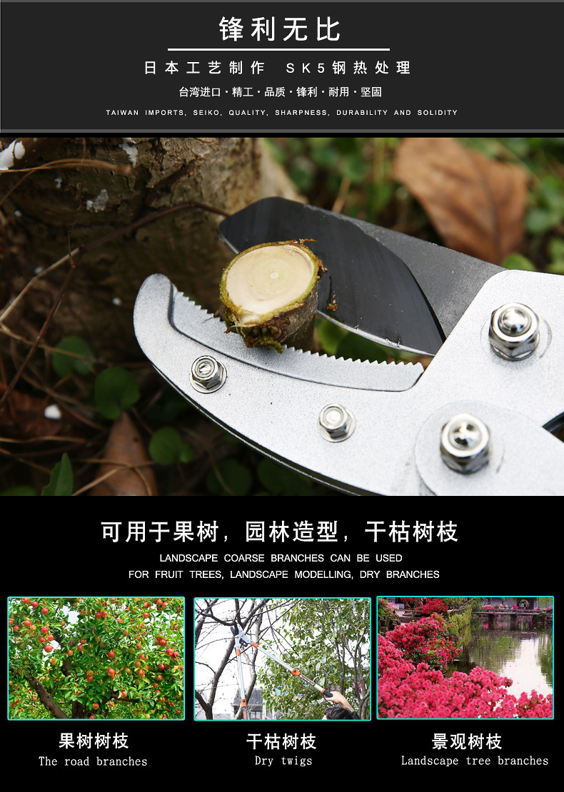 Импортированные грубые филиалы, филиалы и филиалы, филиалы, филиалы, фруктовые деревья, ножницы зеленого сада телескопические и энергичные инструменты для садоводства