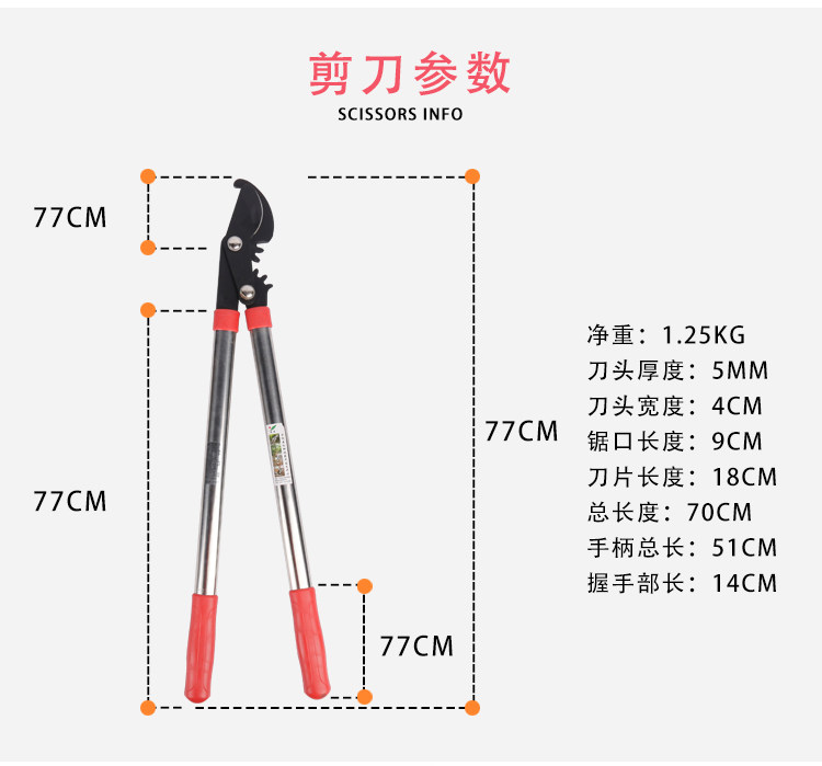 Ручка садоводства из нержавеющей стали, грубые ветви, ветви, срезанные фруктовые деревья, порезы и ветви, режущие садовые инструменты, высокие ветви