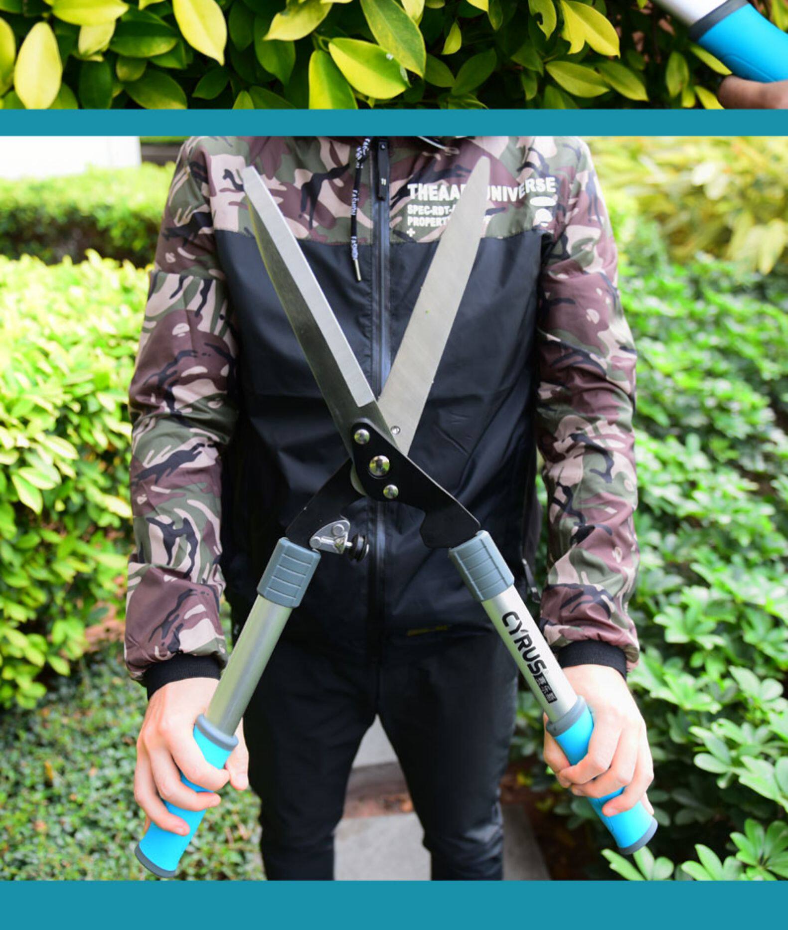 Садовый забор сдвиг зеленые ножницы, садовые ветви, нарезанная трава, цветок, большие ножницы, фруктовые деревья из нержавеющей стали