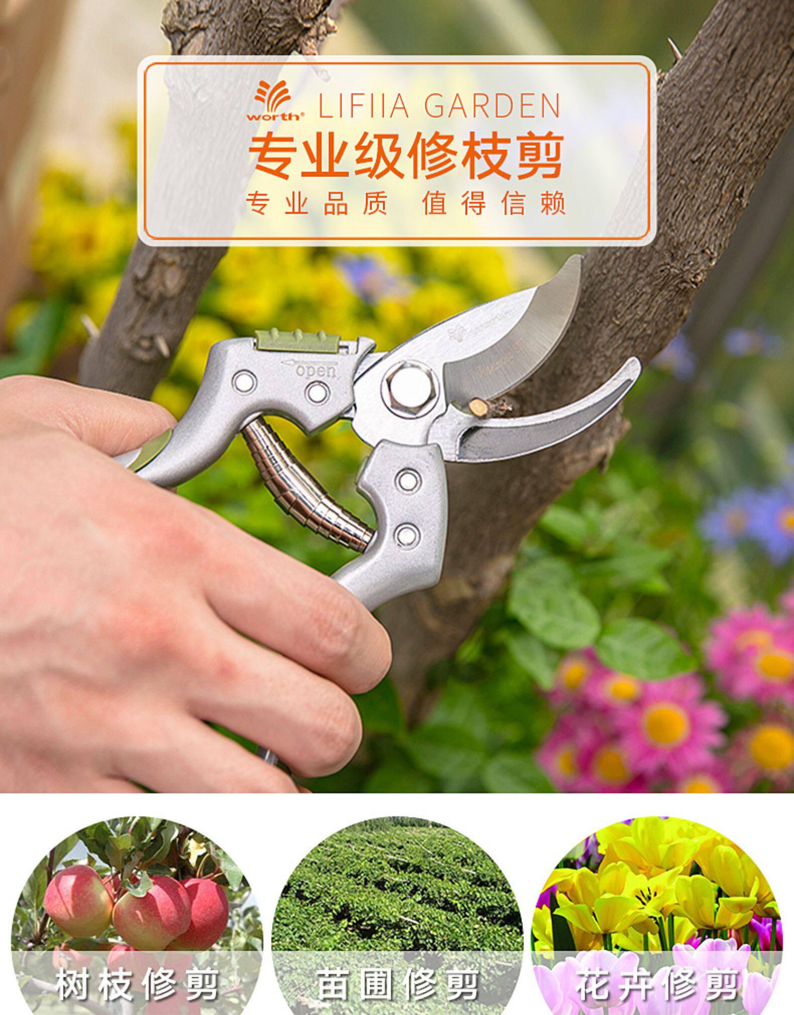 沃施 Стоит в садоводстве и разрезание садового фруктового дерева.
