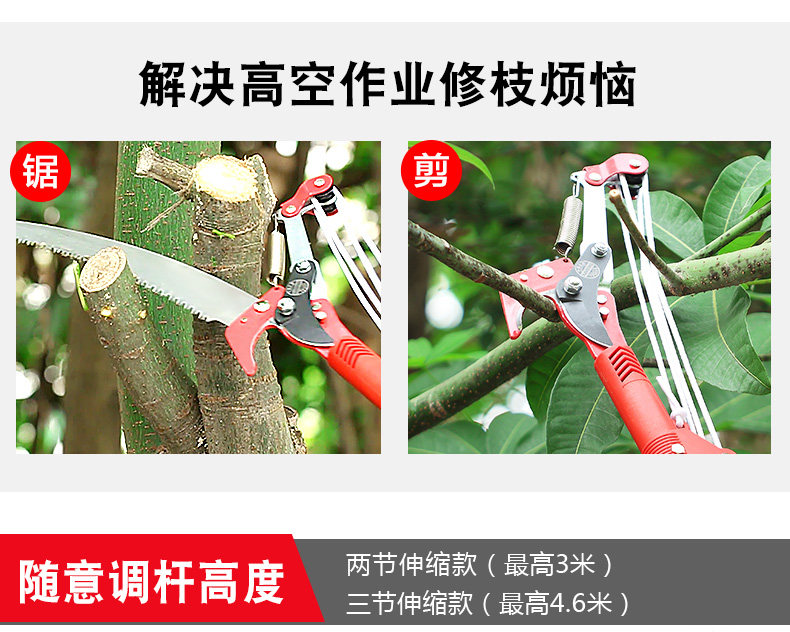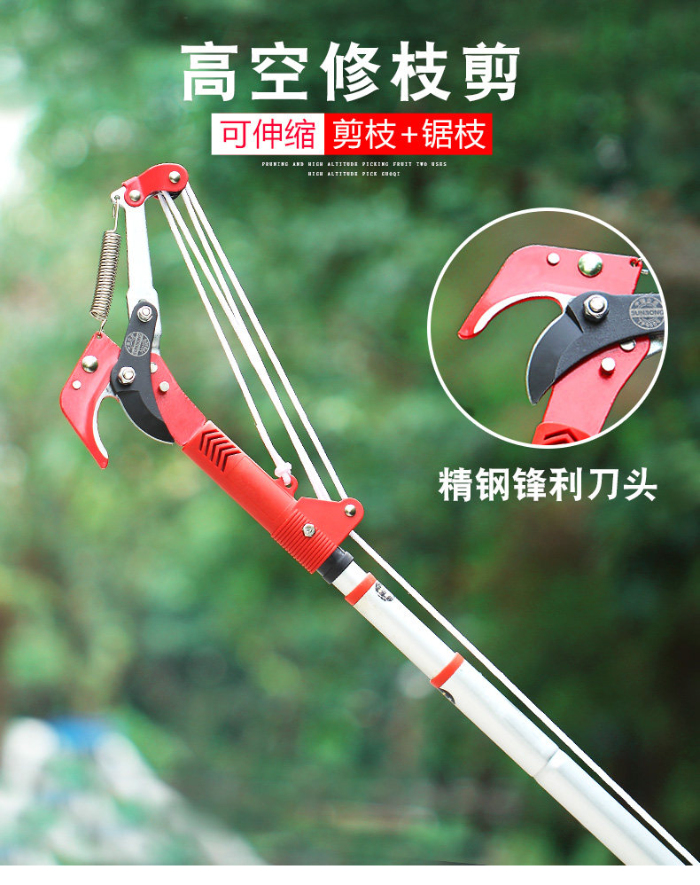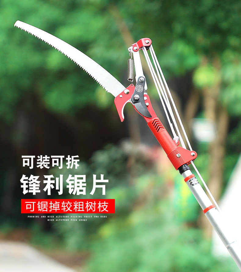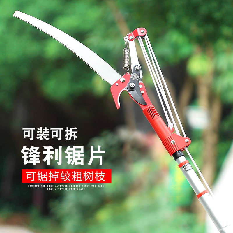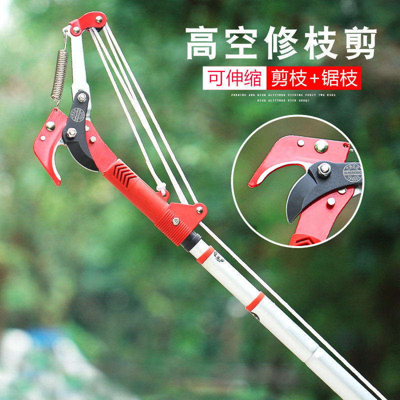 Садоводные филиалы, резание высоких ветвей, сдвиг и втягивание инструментов для садоводства, чтобы обрезать ветви, ножницы, высокие ветви, пили высокие ножницы