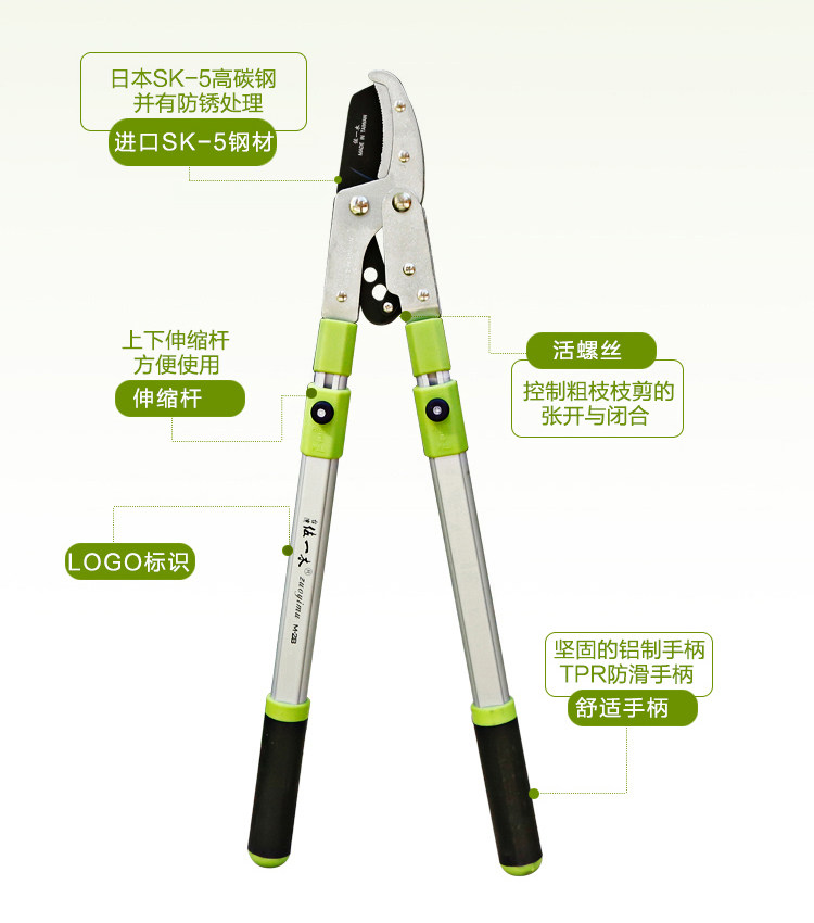 Тайвань Zuyiyi Телескопические грубые избранные ветви разрезают ветви и разрезают садовые садовые инструменты, ветви, нарезанные фрукты, высокие ветви