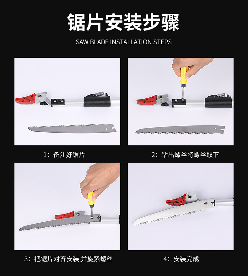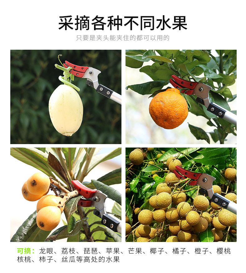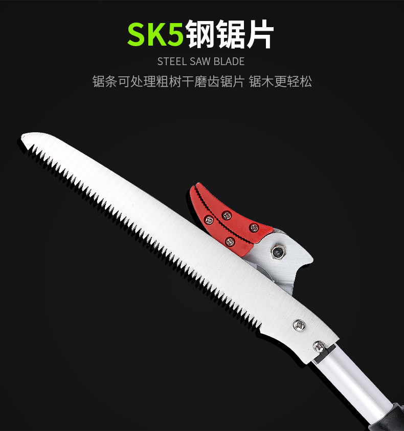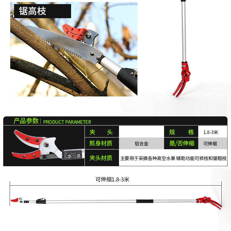 Высокая высокая пила фруктового дерева, ножницы, обрезка, банка высокой высокой высоты, вырезайте высокие ветви, вырезают фрукты, сбор фруктов и резка