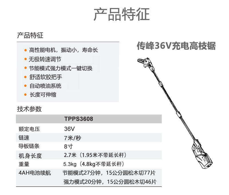 传峰 Зарядка с высокой ячейкой пила ветви высоты пилики и распиляние