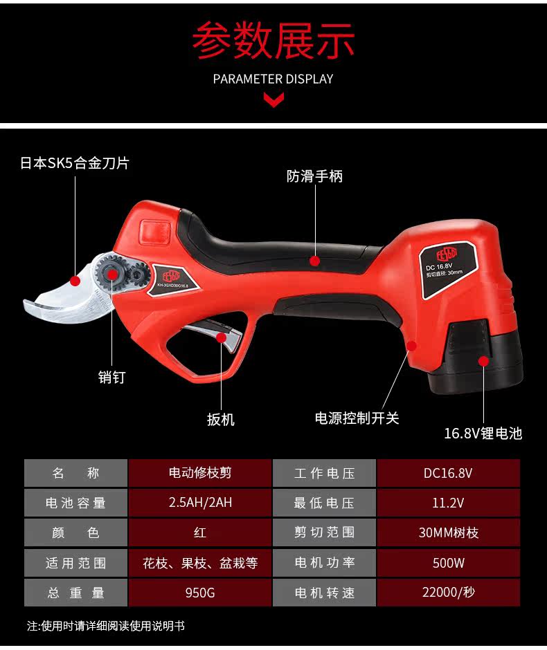 Фейсбо электрические ножницы фруктовые дерева заряжаются домохозяйственные электро -массы портативные садовые отруби машины Мощные ветви и обрезка