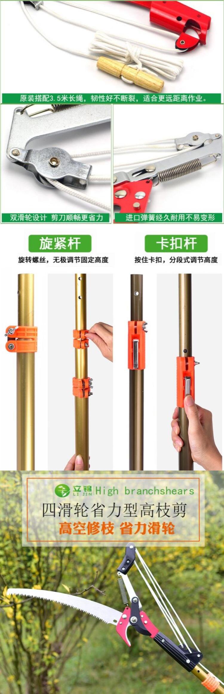 Многофункциональная расширенная телескопическая высокая вырубка сдвига, ножницы, сады, высокие ветви, веревка веревки, дерево ремонта высокой высоты