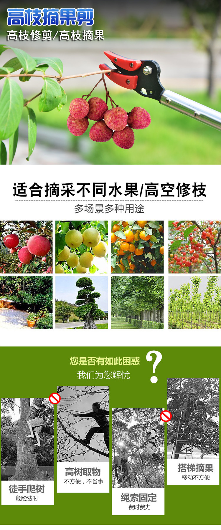 Высокогражденные фруктовые ножницы, нержавеющая сталь, высокая ветвь Высокая высота, фруктовый срез Pipa Litchi Dragon Eye Picking