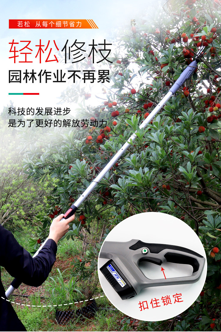 Электрические фрукты сборы фруктовых садов Телескопические ветви разрезают ветви Litchi Dragon Eye, ножницы, высокая высота удлинительная зарядка фруктов