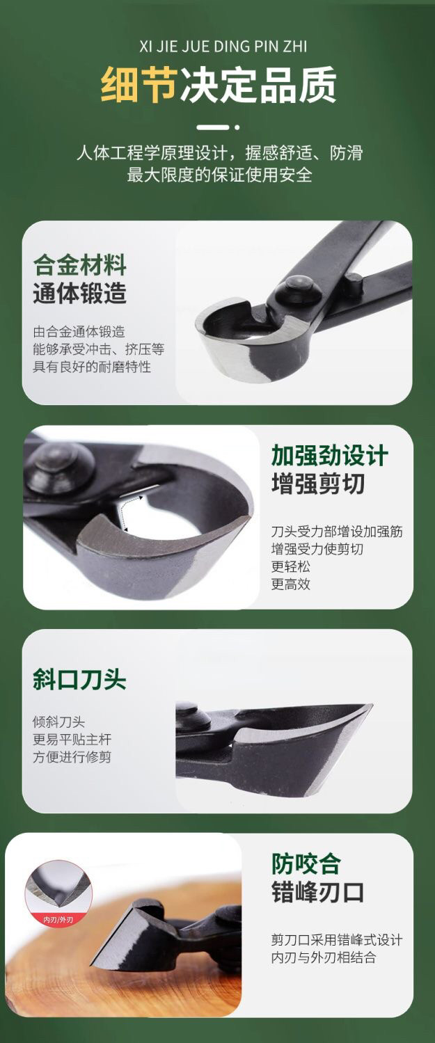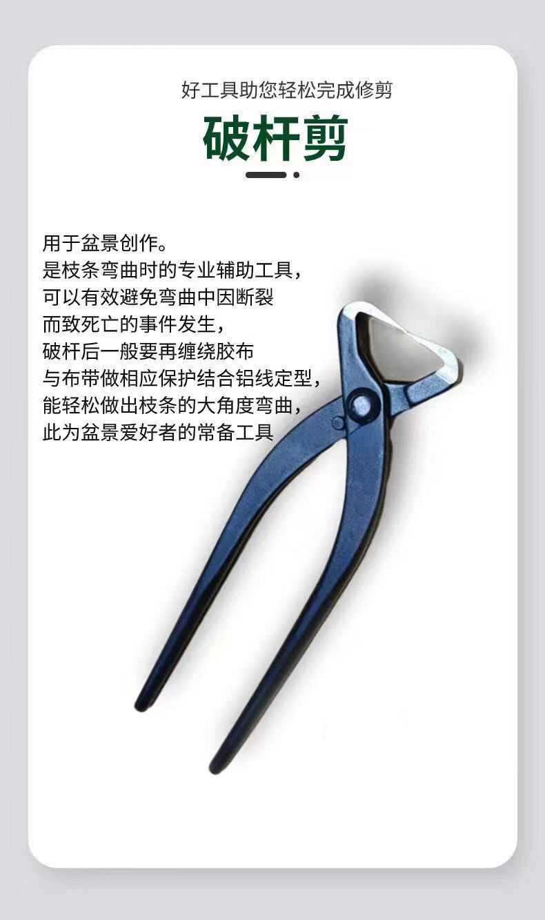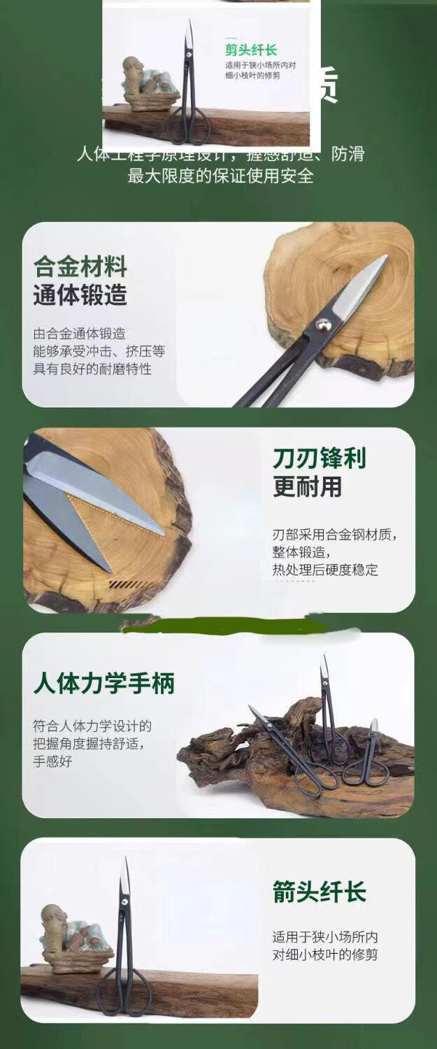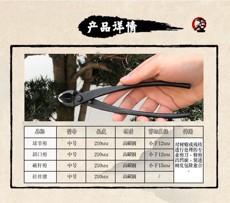 Инструменты для бонсай: ножницы для шаровых шарниров, шарогубцы, диагональные ножницы, вилочные ветви, ножницы для сломанного стержня, плоскогубцы для волочения проволоки, ножницы для ветвей, прочная и долговечная высокоуглеродистая сталь