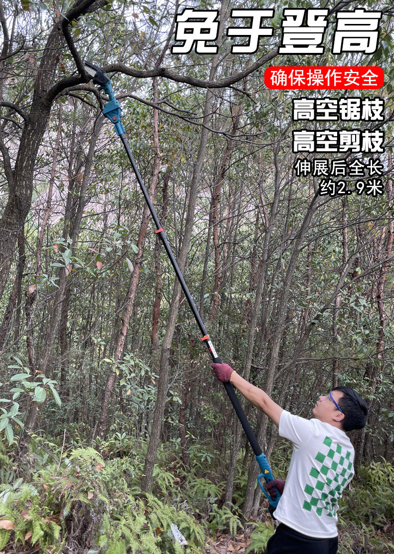 Высокие ветви увидели высокие ветви, и разрезать три участка телескопических ветвей, которые можно повернуть в фруктовые деревья садовые ветви и ветви, а также режущие электрические селиные пилы литиевые батареи