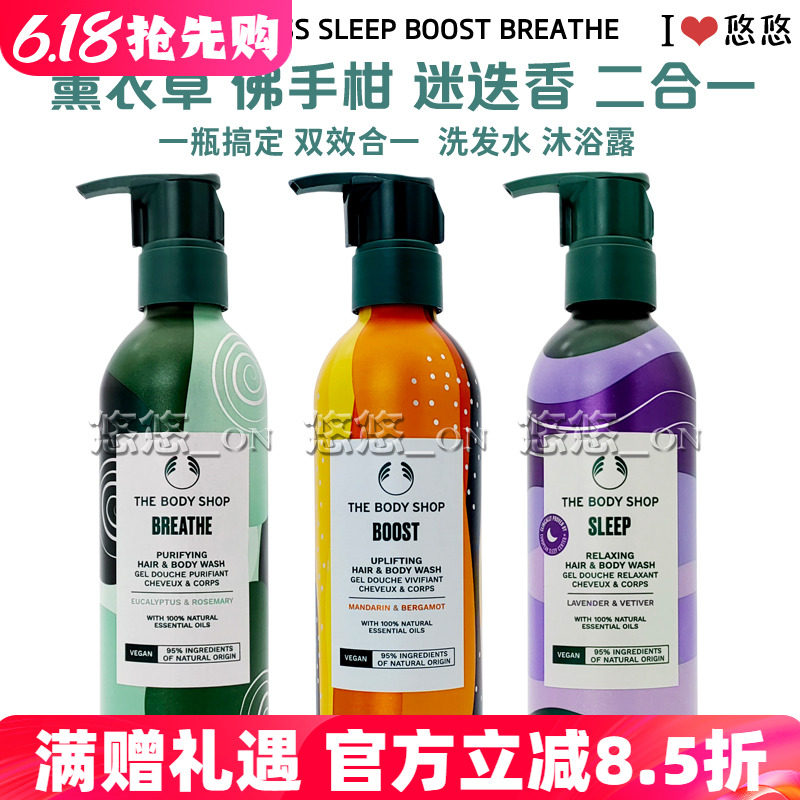 The Bodyop Body Shop TBS Лаванда Розмарин мыть волосы, купая два -в одном, увлажняющий и чистящий