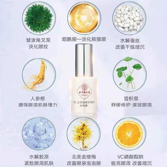 同仁堂 Многофункциональная восстанавливающая разглаживающая увлажняющая осветляющая эссенция, крем для глаз от мешков под глазами, против морщин, против темных кругов под глазами