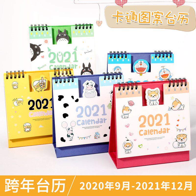 Милый свежий мультяшный настольный календарь, 2021 года, 2020