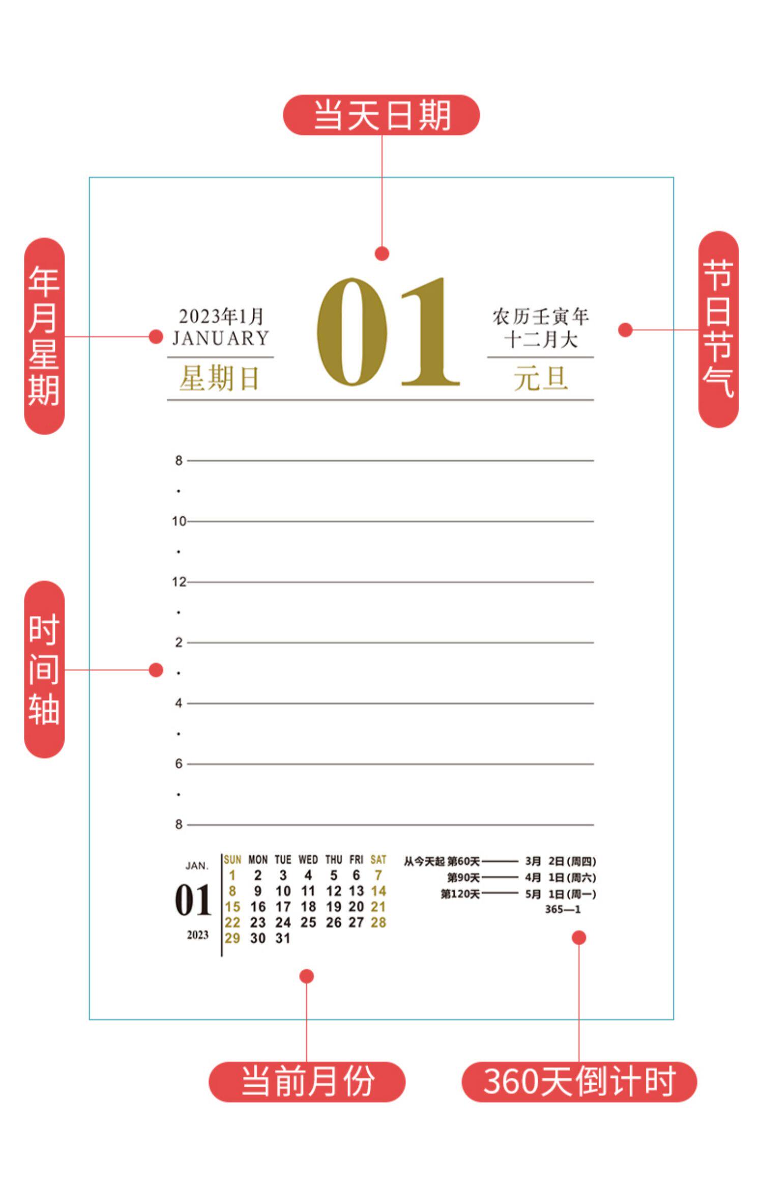 2023 Календарь страница набухания рабочего стола Творческое кролик 365 дней ежедневно самодисциплинарные ноты Планируйте этот календарь Луны.