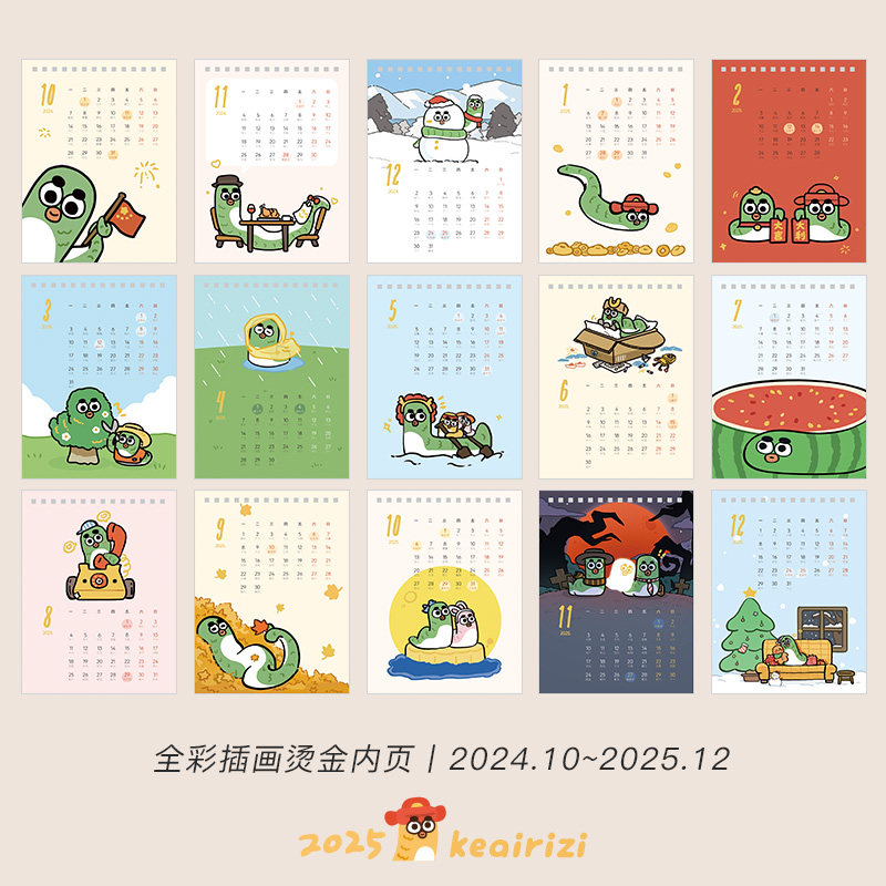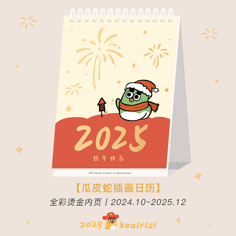 [Прекрасные дни] Оригинальный настольный календарь со змеей на 2025 год, ежемесячный календарь на год змеи, новогодний подарок, календарь с золотым тиснением
