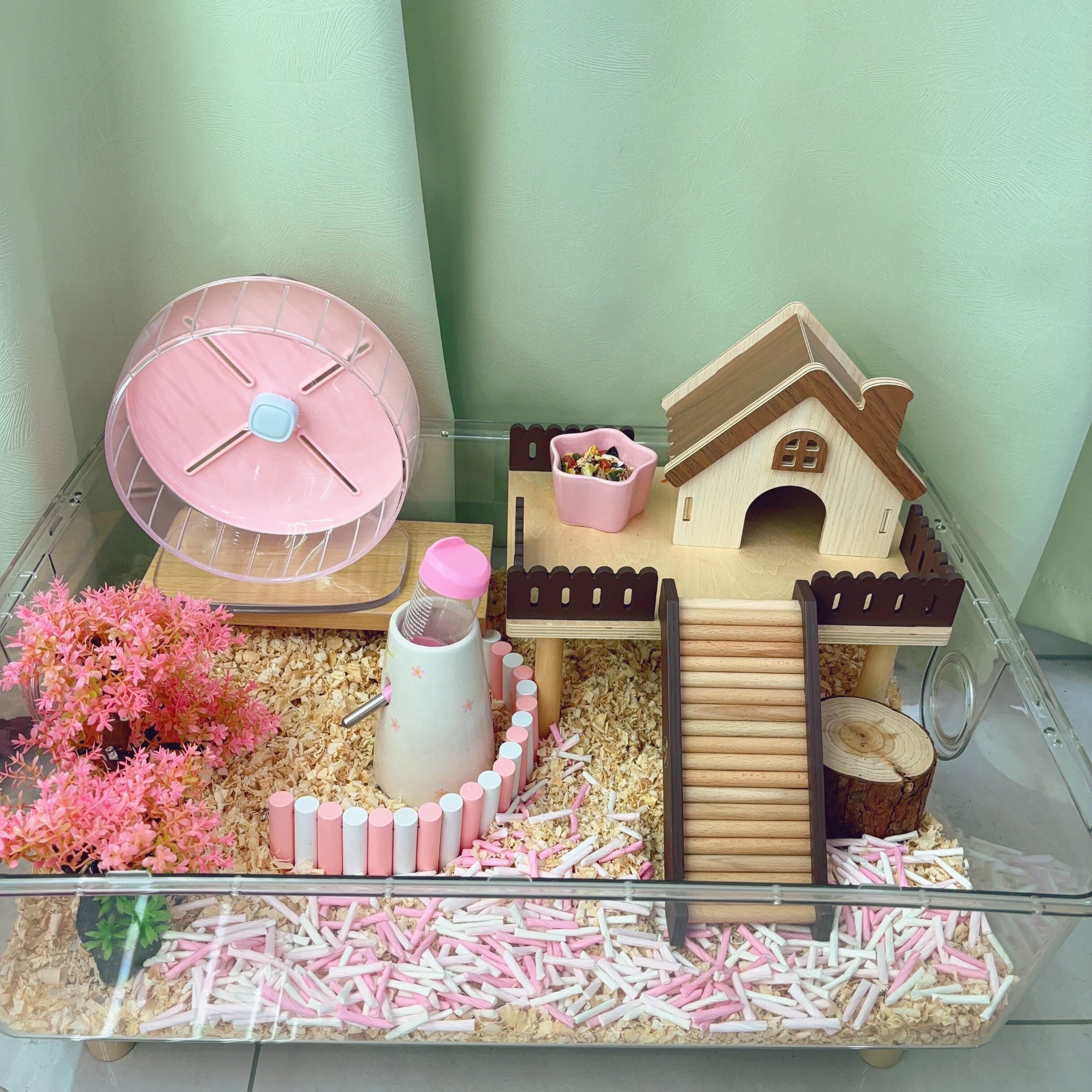 Aiji Pet Hamster Cage Landscape Landscape Landscape Platform, утолщенная с лестницей золотой проволочной медведь Dodge House маленький дом деревянный украшение