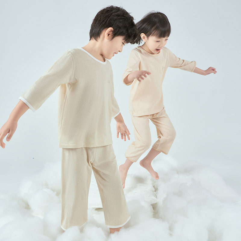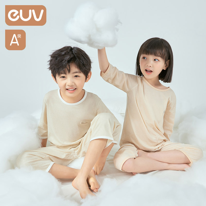 euv Детская летняя тонкая пижама для мальчиков, хлопковый комплект, форма, подходит для подростков