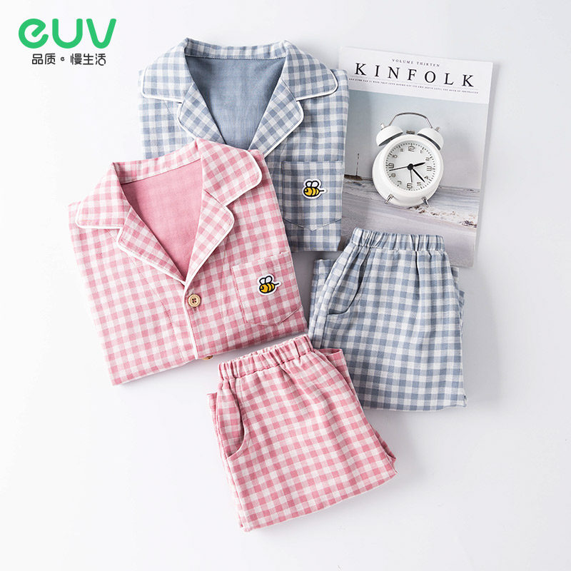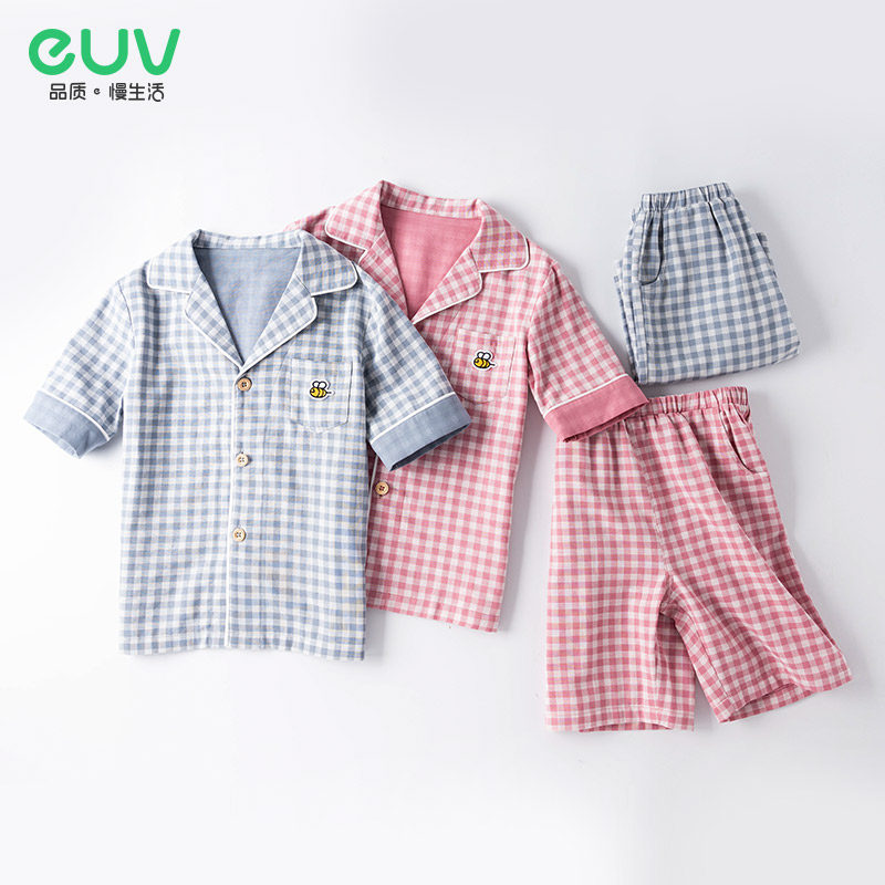 euv Детская тонкая пижама подходит для мужчин и женщин, летний хлопковый марлевый комплект, 3-4-5 лет