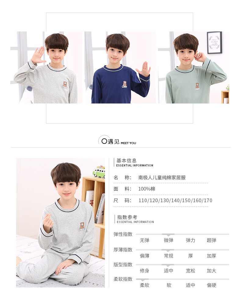 南极人 Детская демисезонная пижама для мальчиков, тонкий хлопковый комплект, осеннее термобелье, подходит для подростков