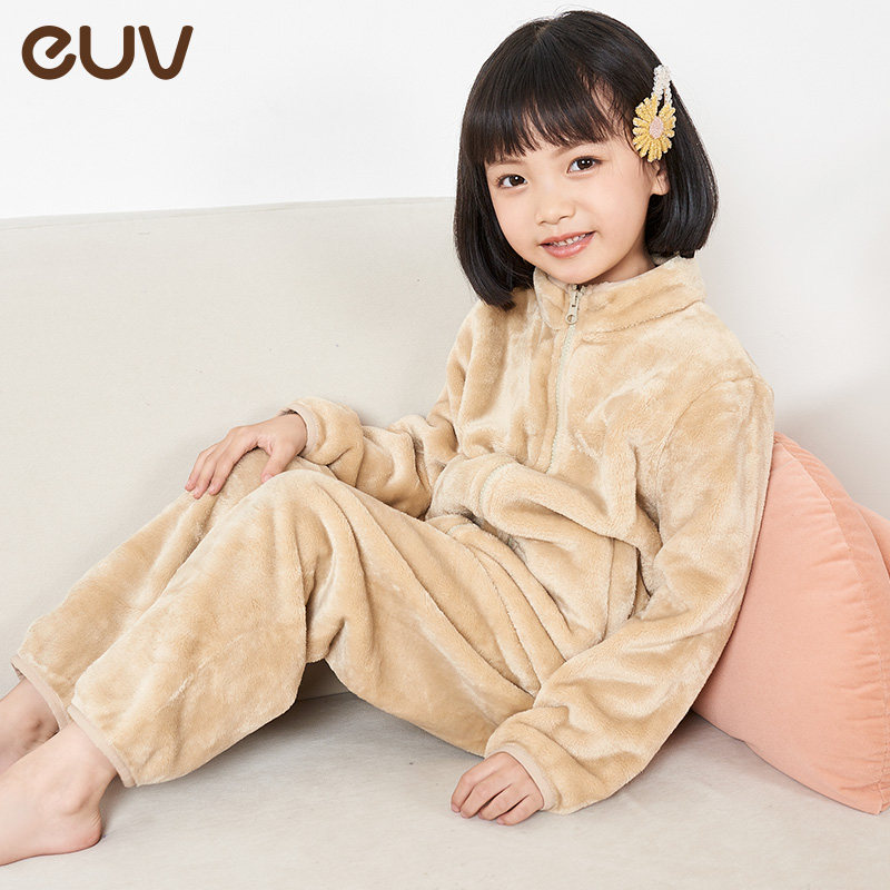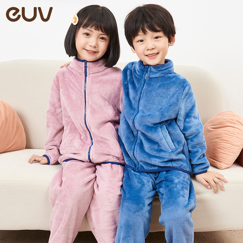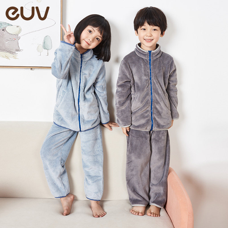 euv Детская фланелевая утепленная коралловая бархатная зимняя пижама подходит для мужчин и женщин