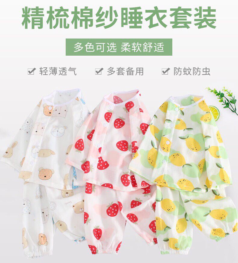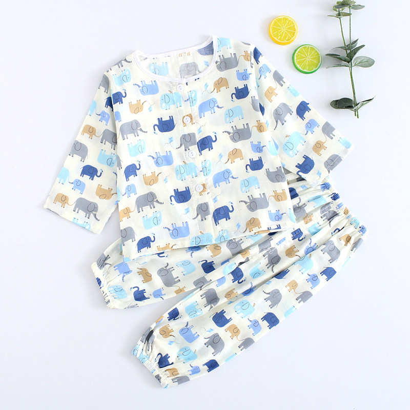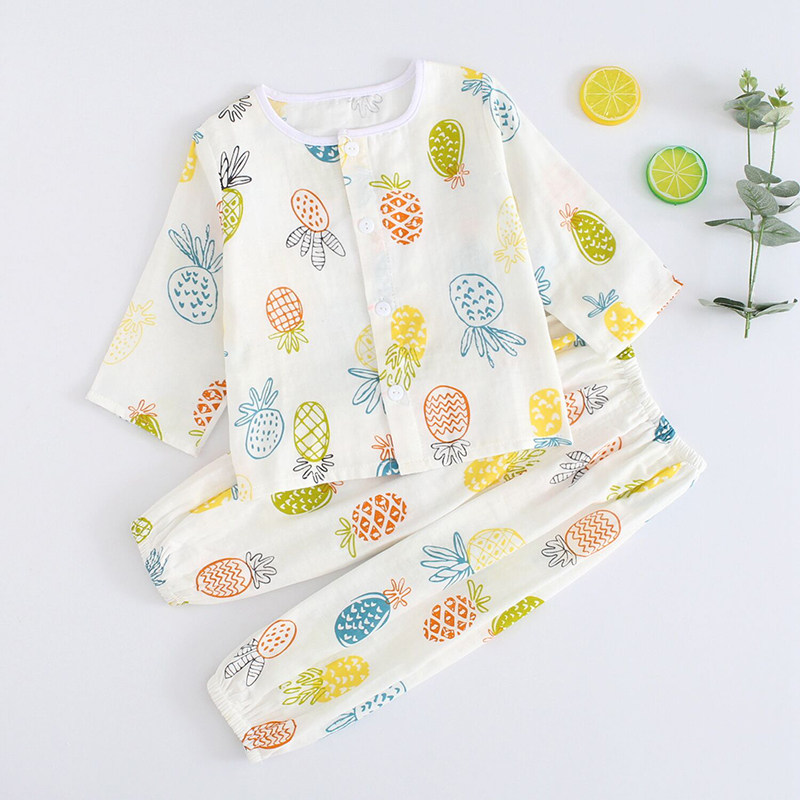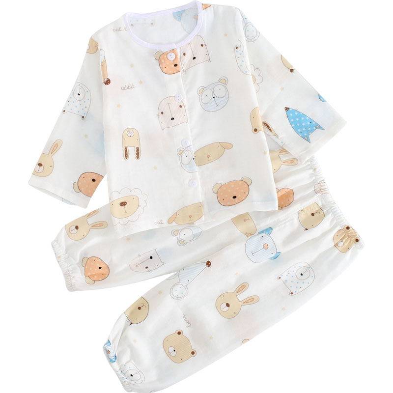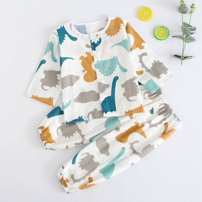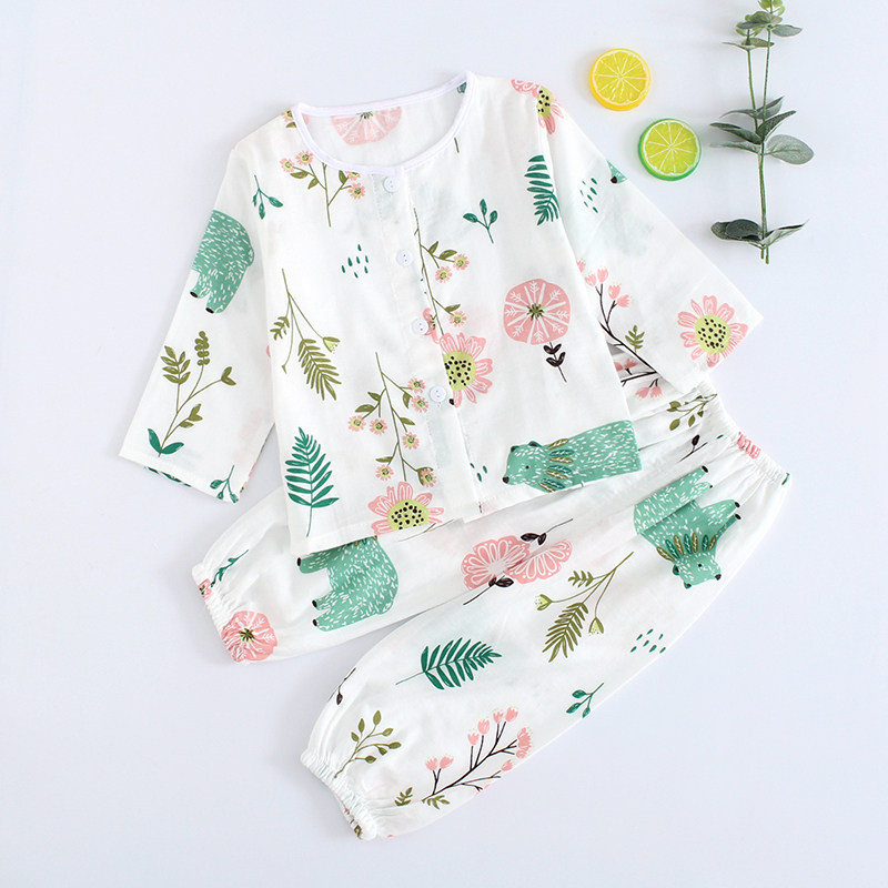Детская хлопковая марлевая мягкая пижама, дышащее нижнее белье, летний детский тонкий лонгслив, нарукавники, комплект