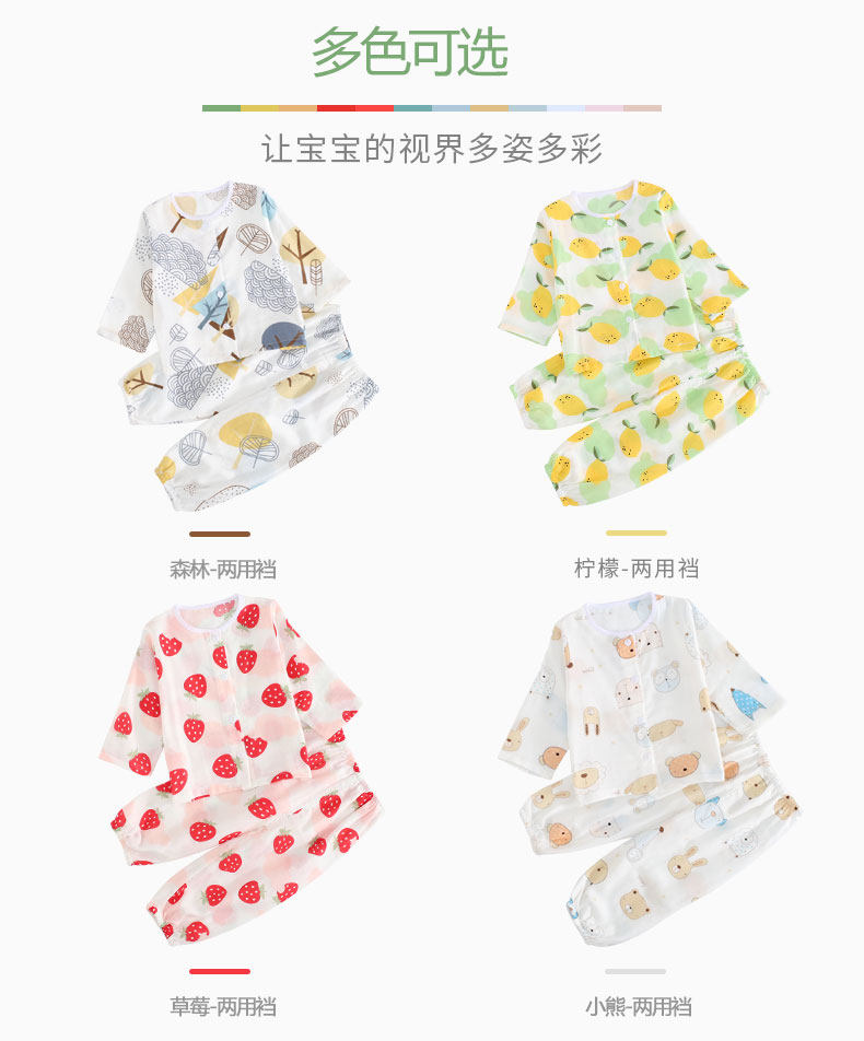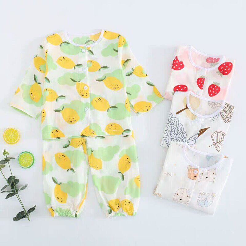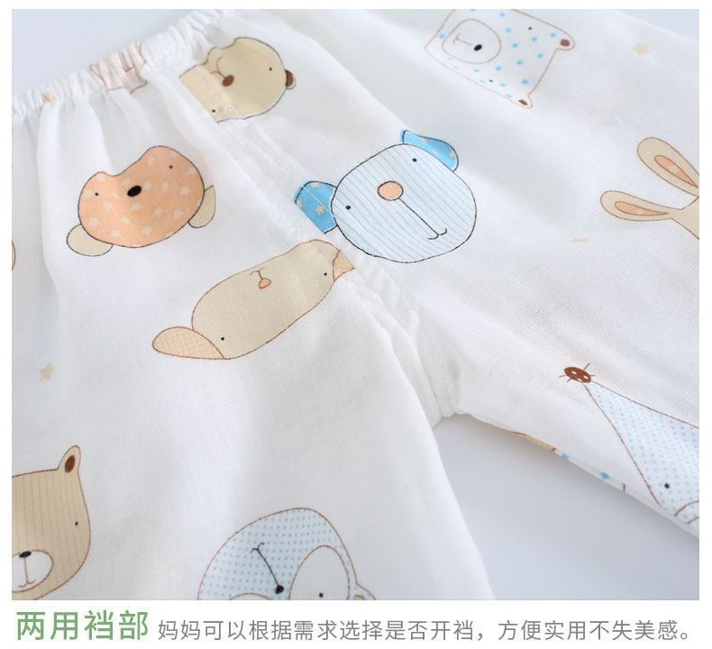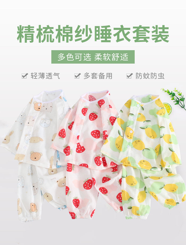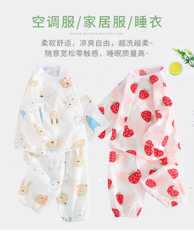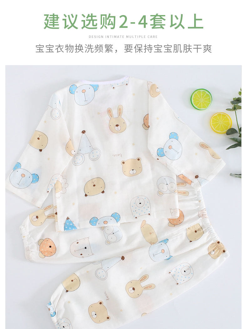 Детская хлопковая марлевая мягкая пижама, дышащее нижнее белье, летний детский тонкий лонгслив, нарукавники, комплект