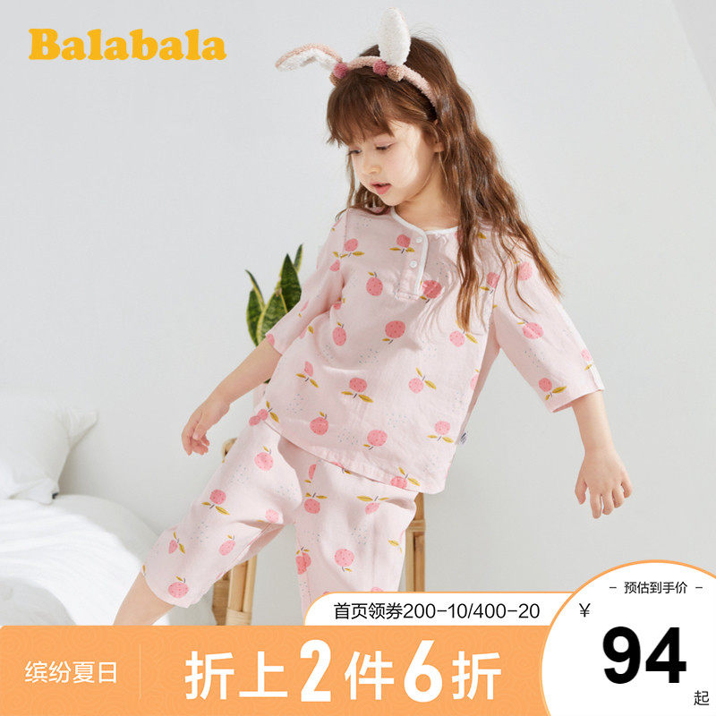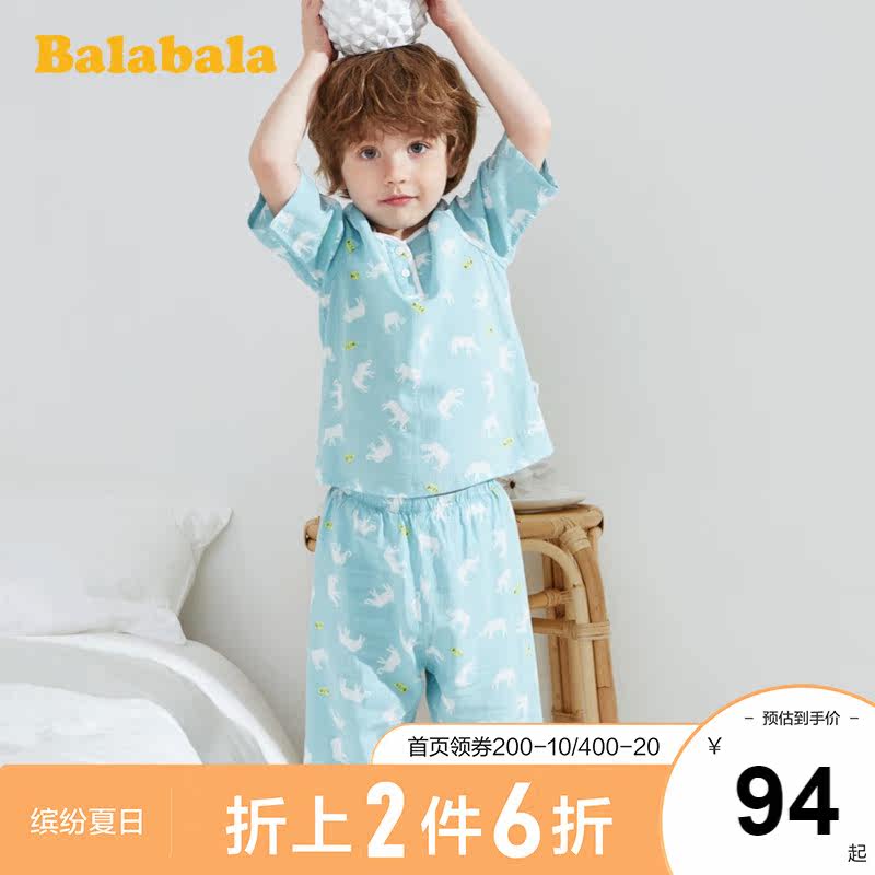 巴拉巴拉 Детская пижама, летний тонкий детский комплект подходит для мужчин и женщин, короткий рукав