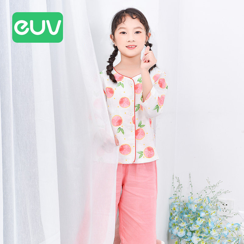euv Летняя милая детская тонкая хлопковая марлевая пижама