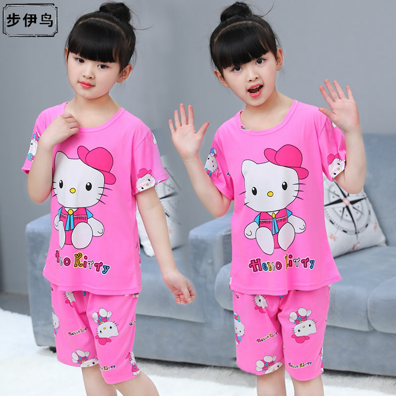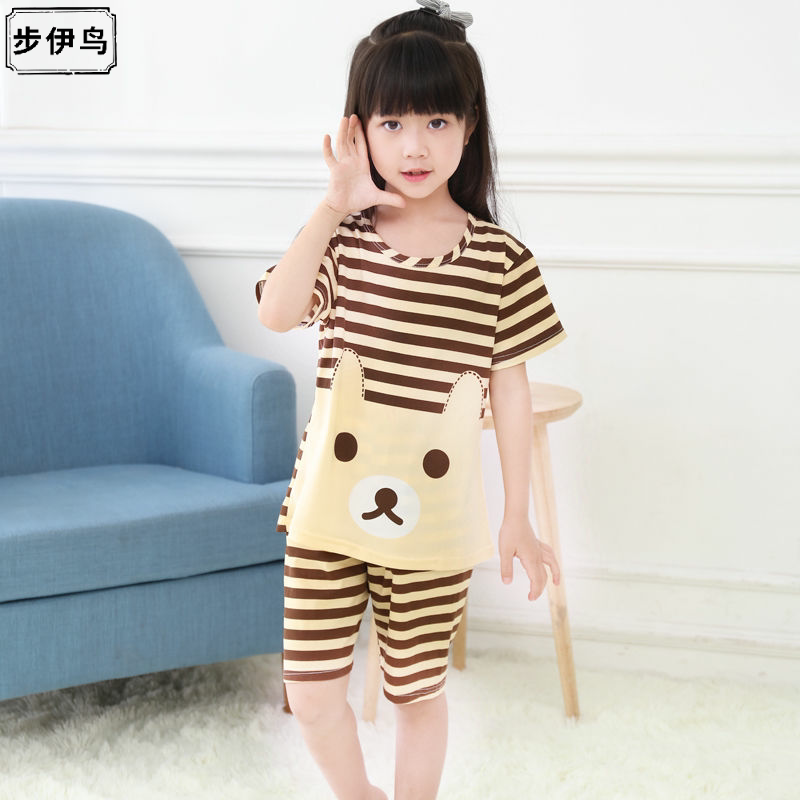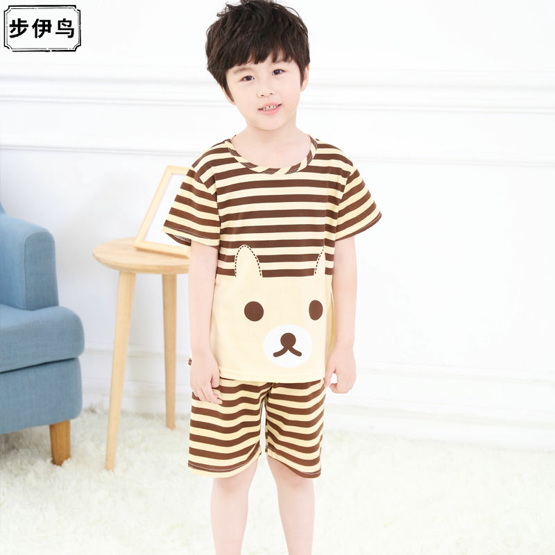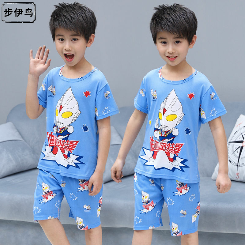 Детская летняя пижама подходит для мужчин и женщин, тонкий осенний детский мультяшный комплект, короткий рукав, подходит для подростков