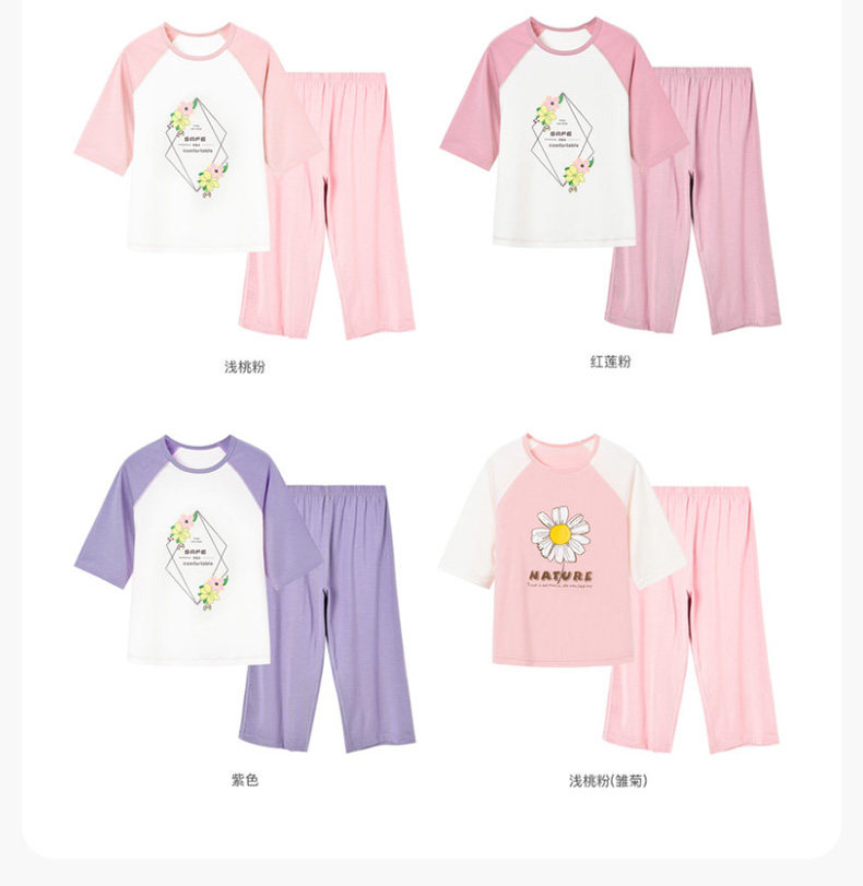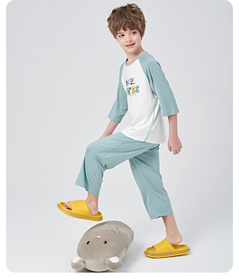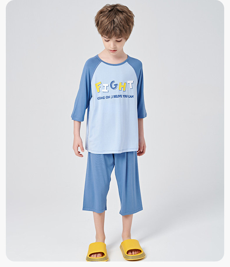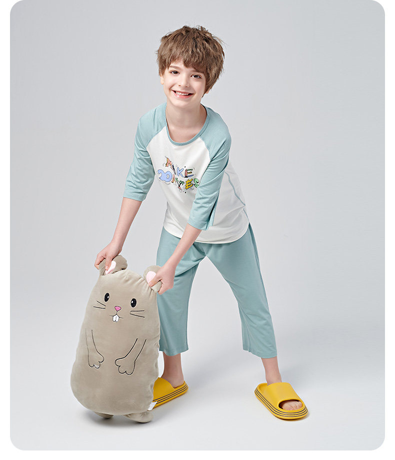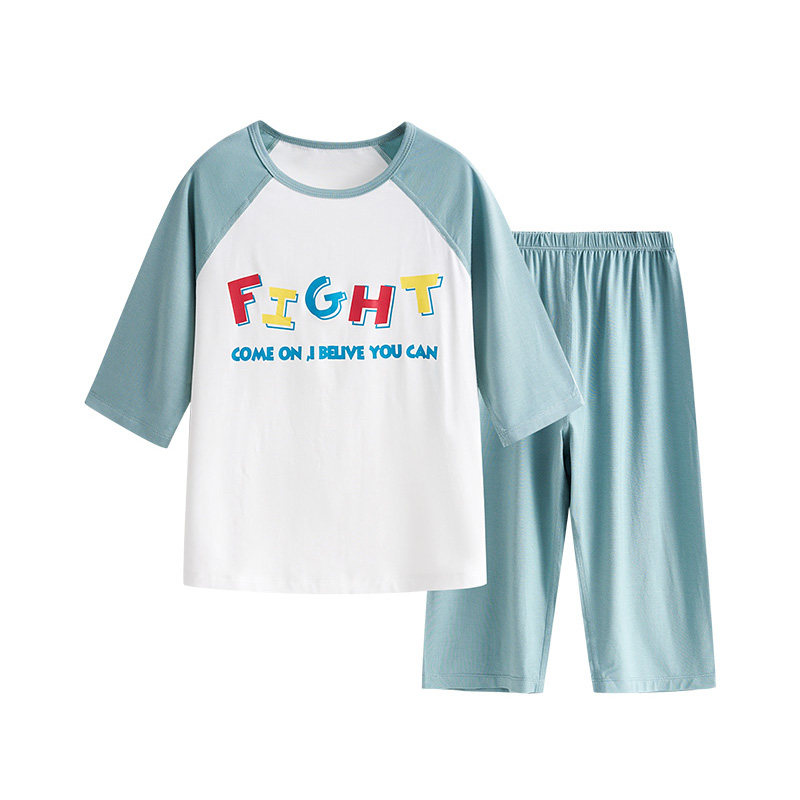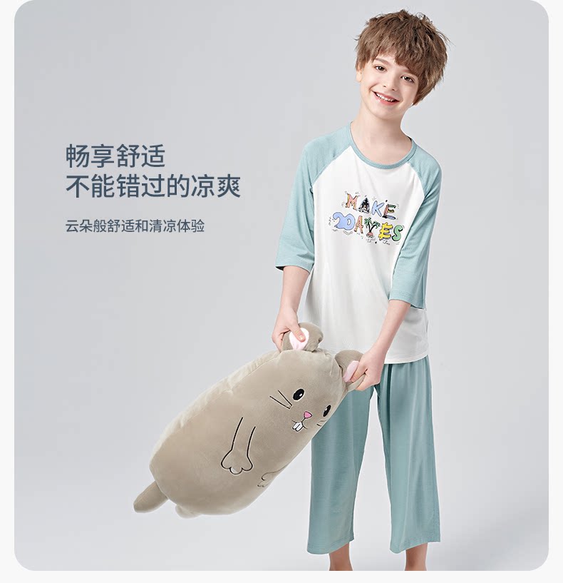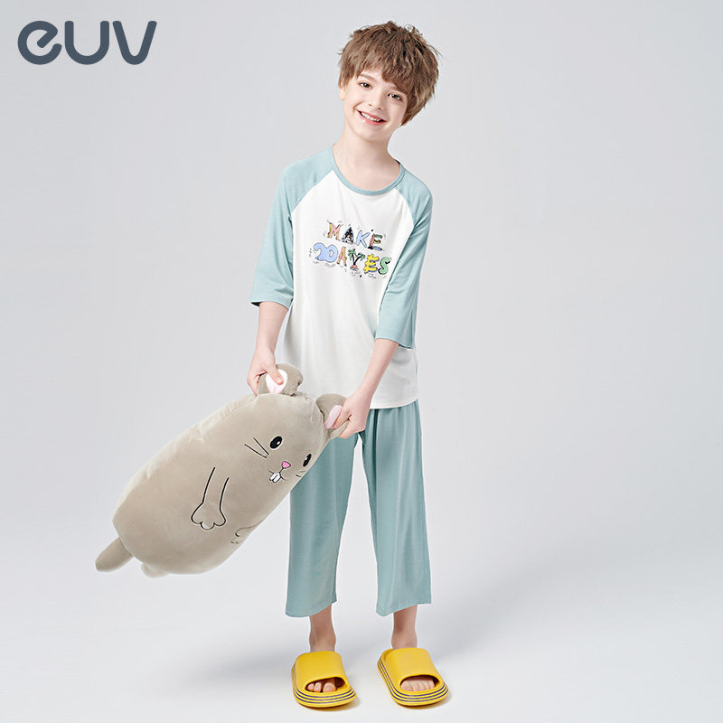 euv Детская летняя тонкая пижама подходит для мужчин и женщин, шелковые нарукавники, комплект, подходит для подростков, короткий рукав