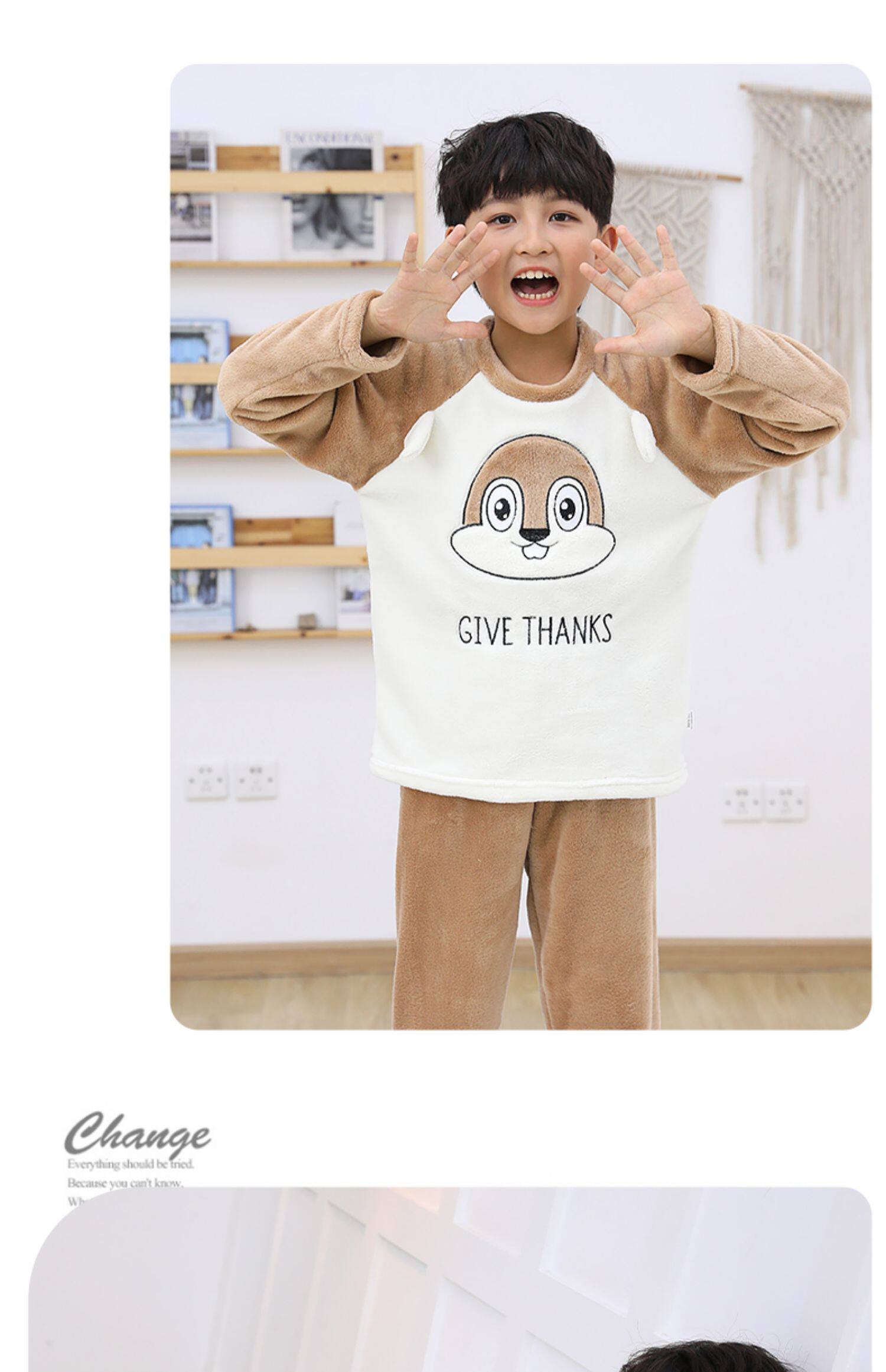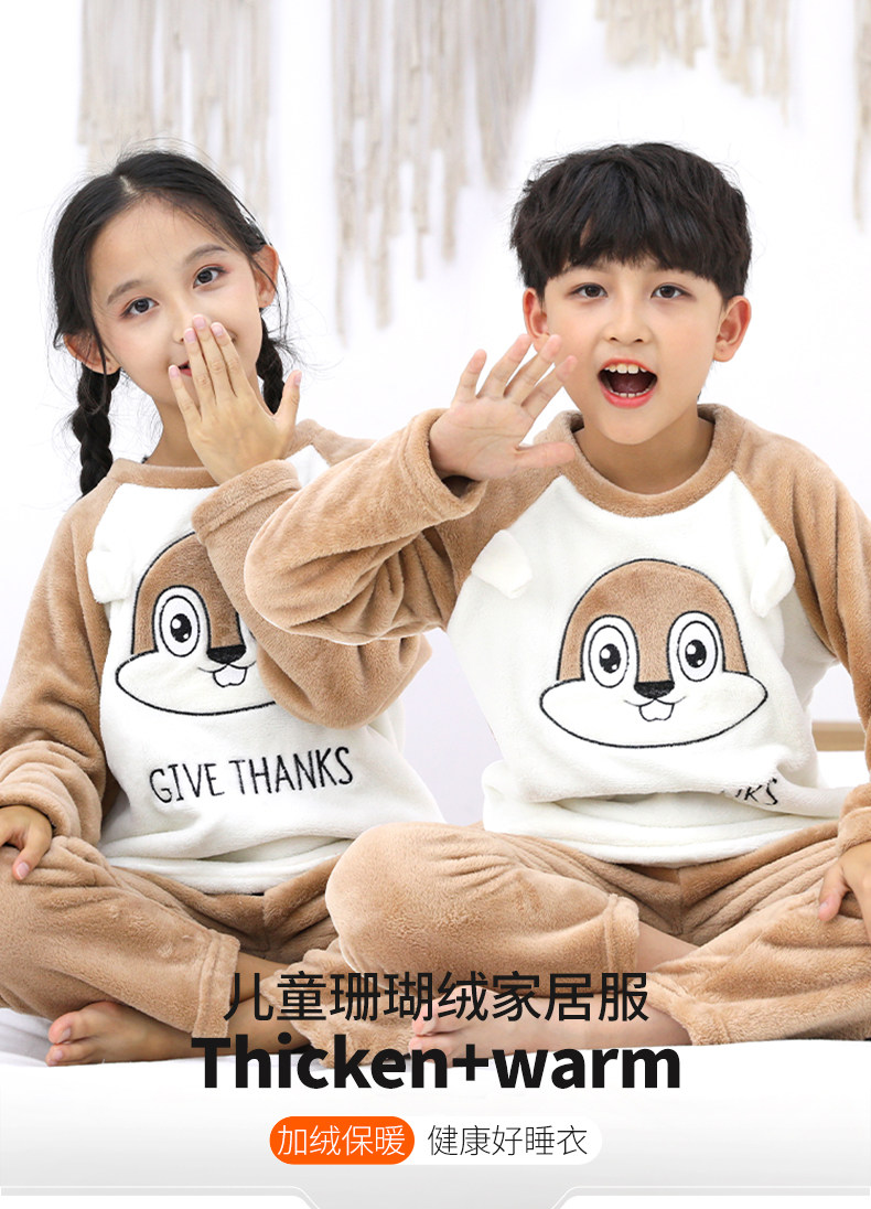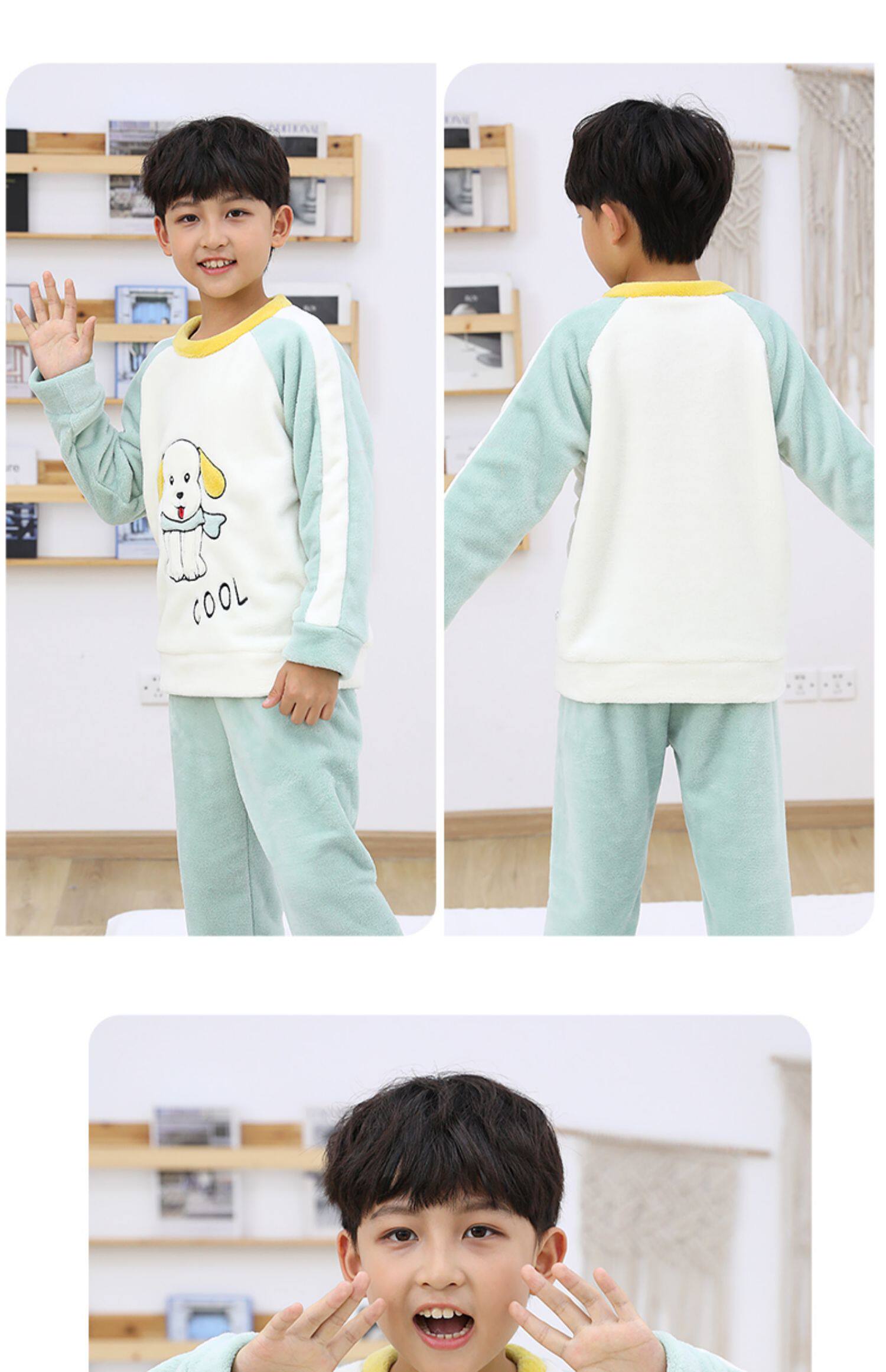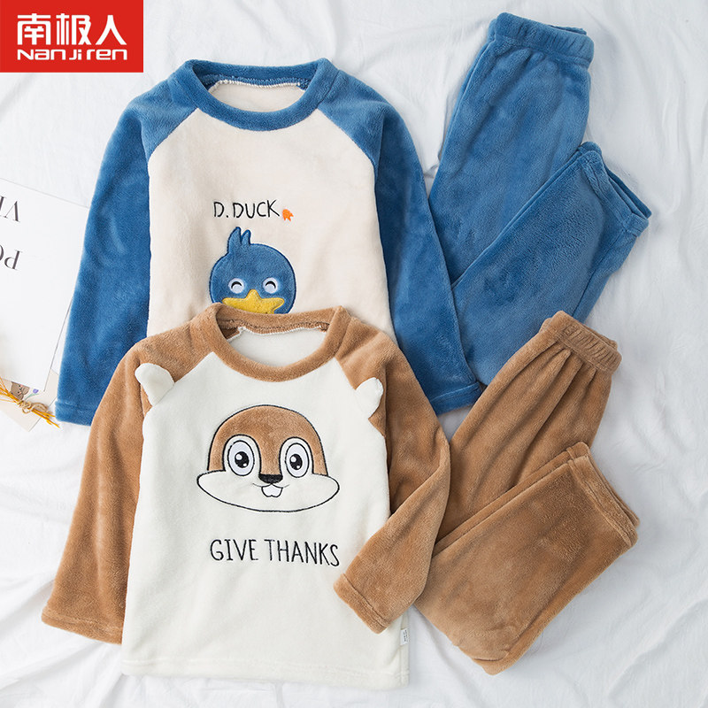 南极人 Детская фланелевая демисезонная коралловая пижама для мальчиков, бархатный детский удерживающий тепло комплект, увеличенная толщина