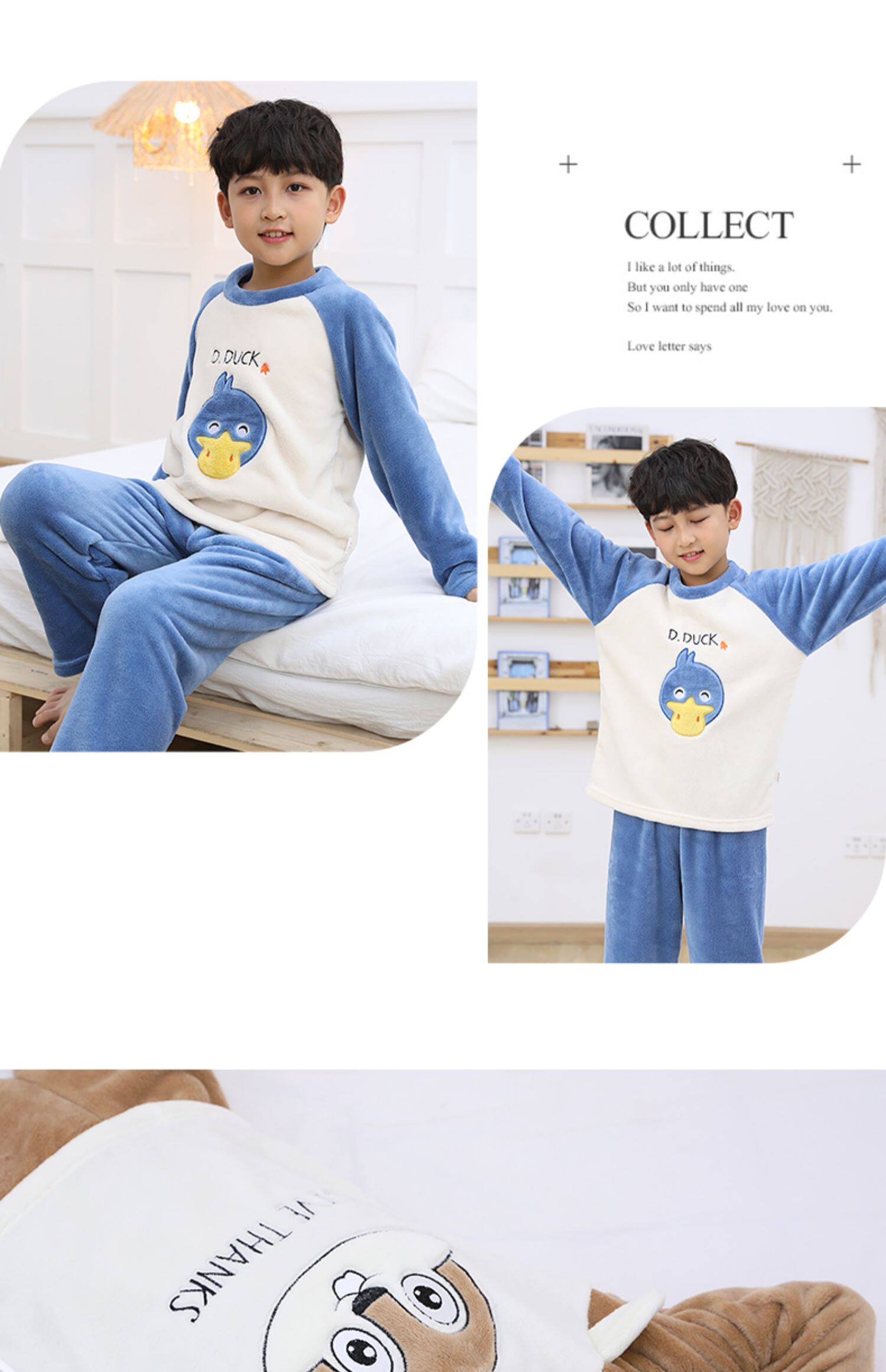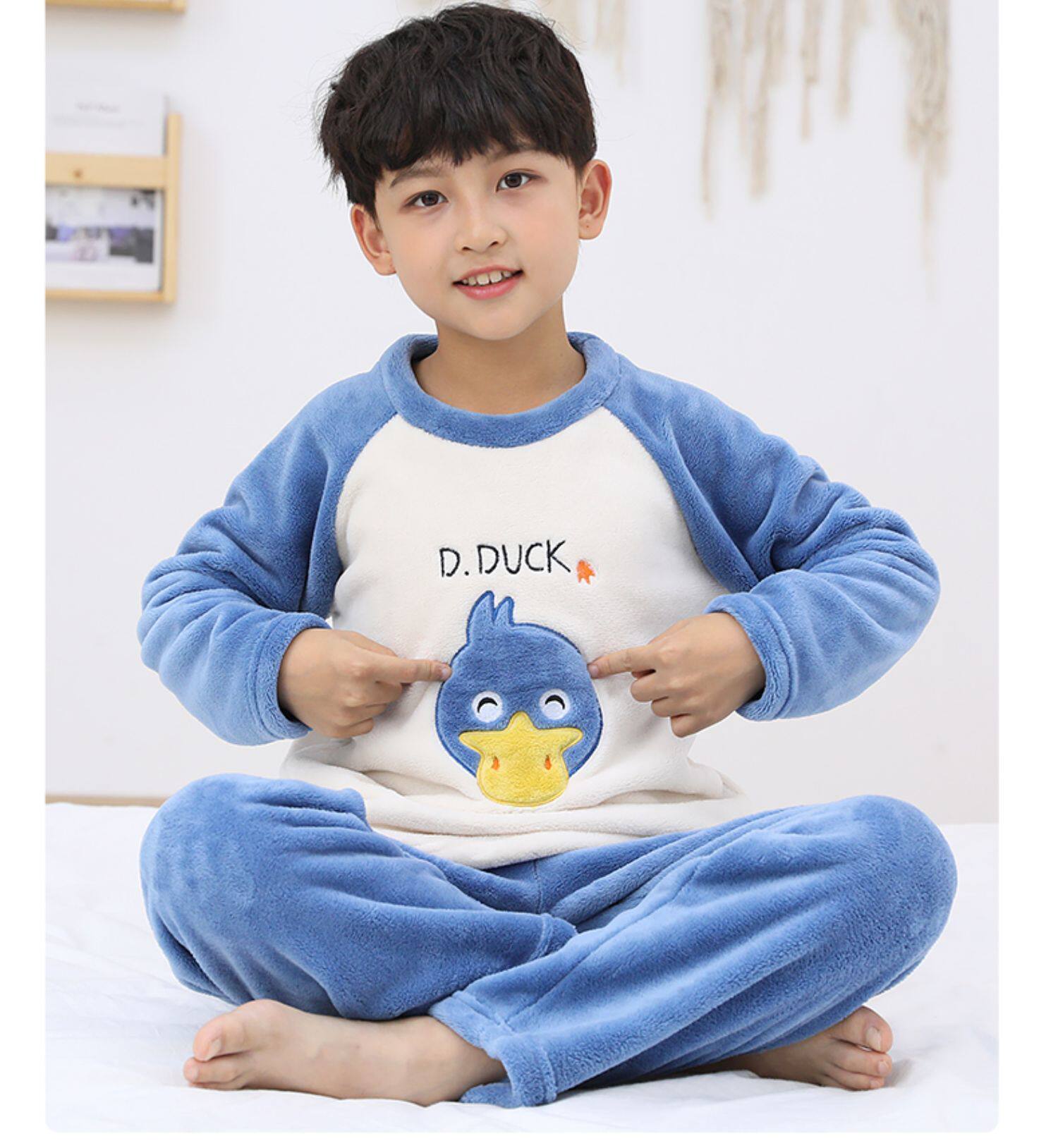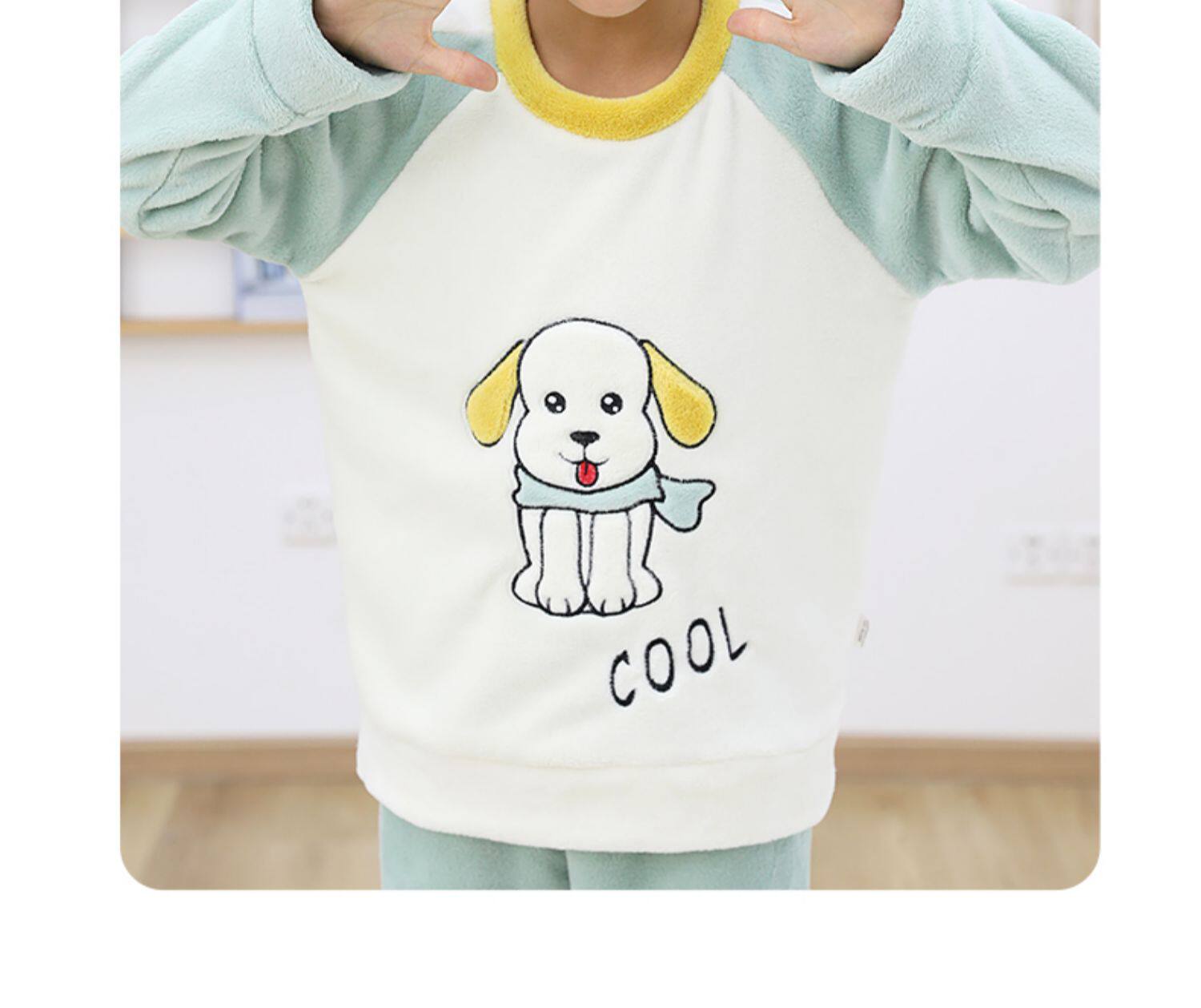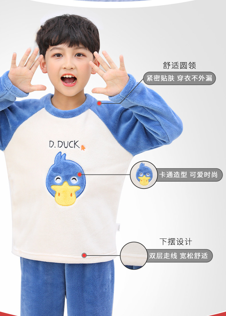 南极人 Детская фланелевая демисезонная коралловая пижама для мальчиков, бархатный детский удерживающий тепло комплект, увеличенная толщина