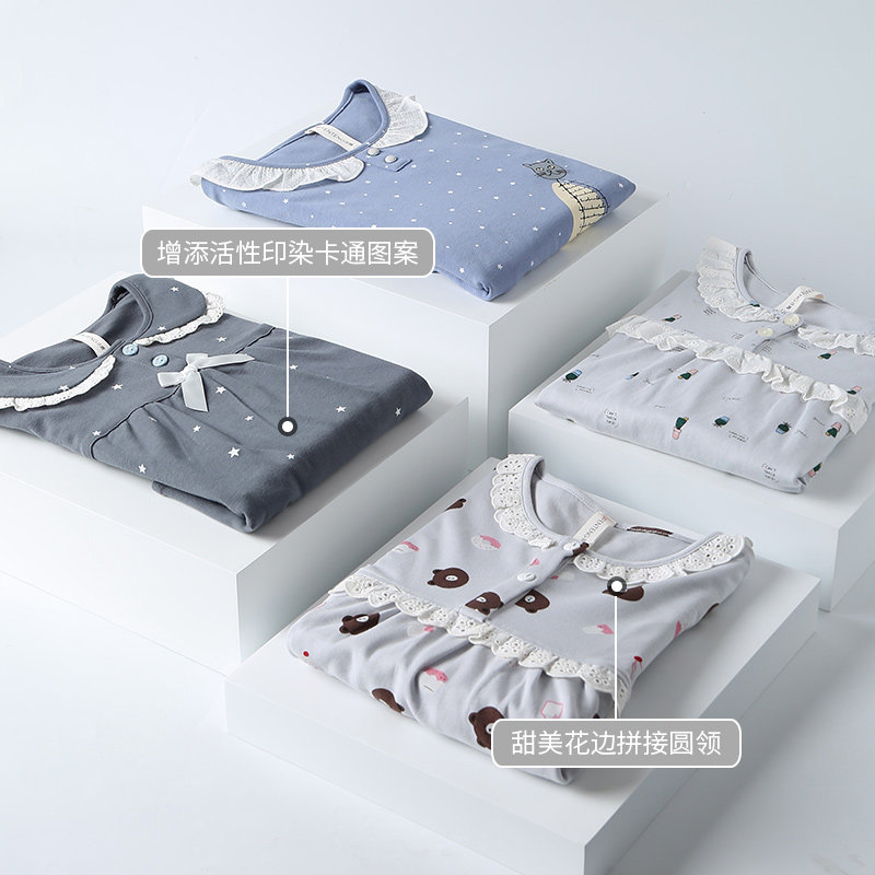 芬腾 Осенняя детская мультяшная милая пижама с круглым воротником, хлопковый комплект, подходит для подростков
