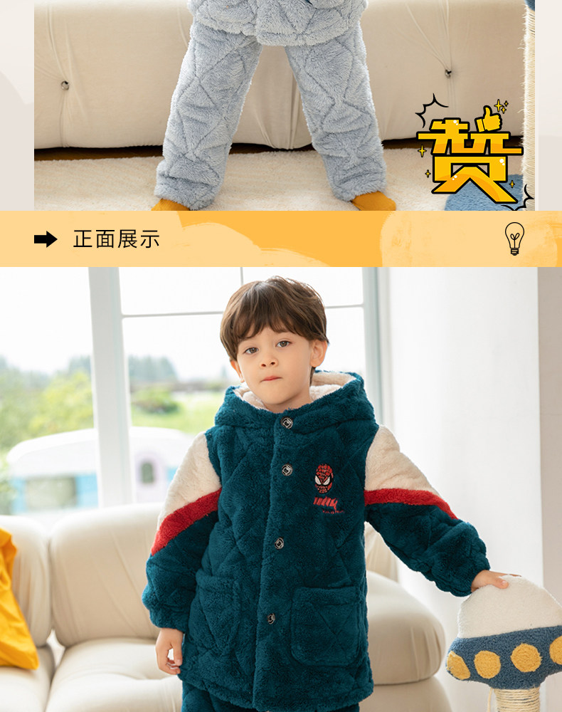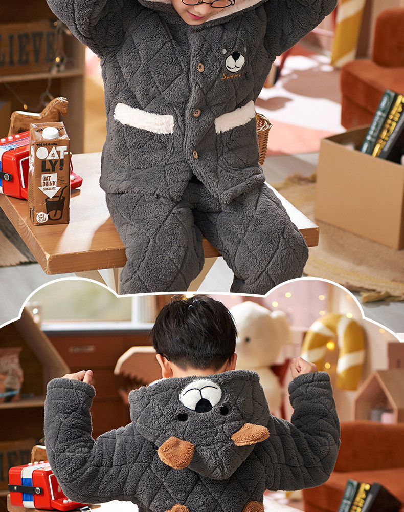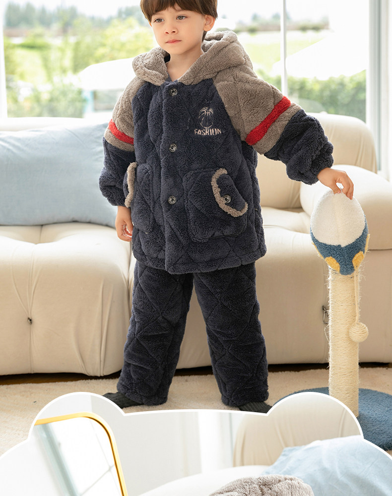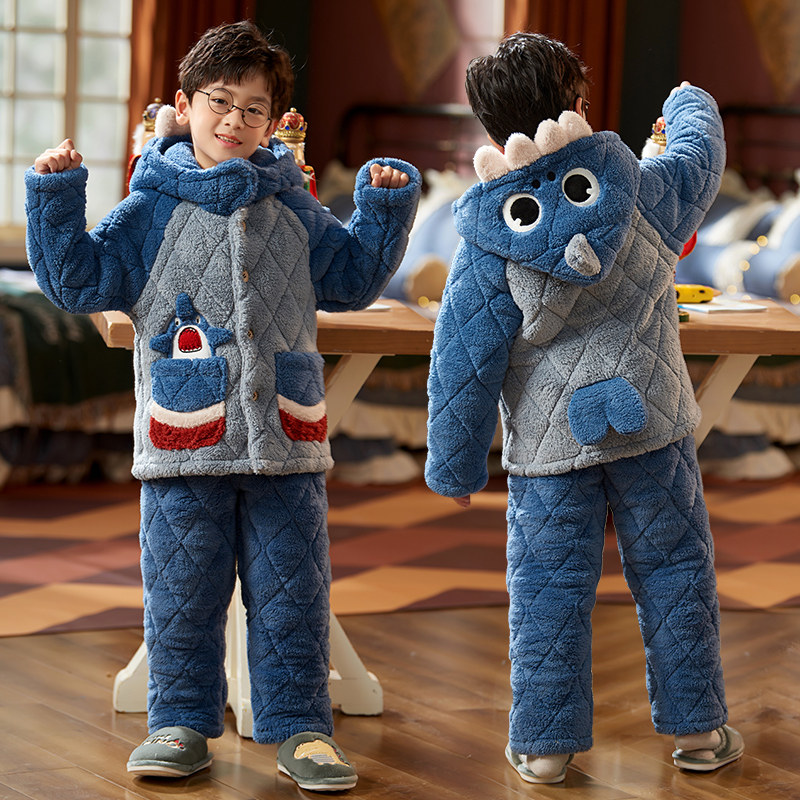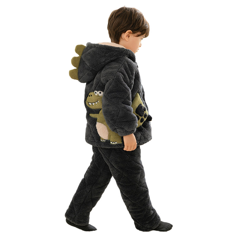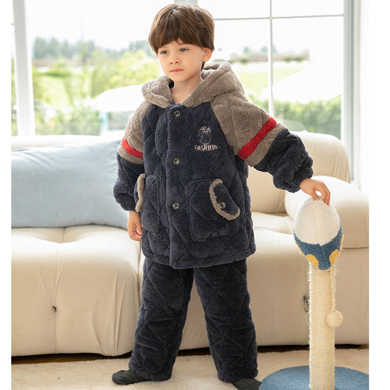 Детская демисезонная коралловая бархатная стеганая фланелевая флисовая зимняя пижама для мальчиков