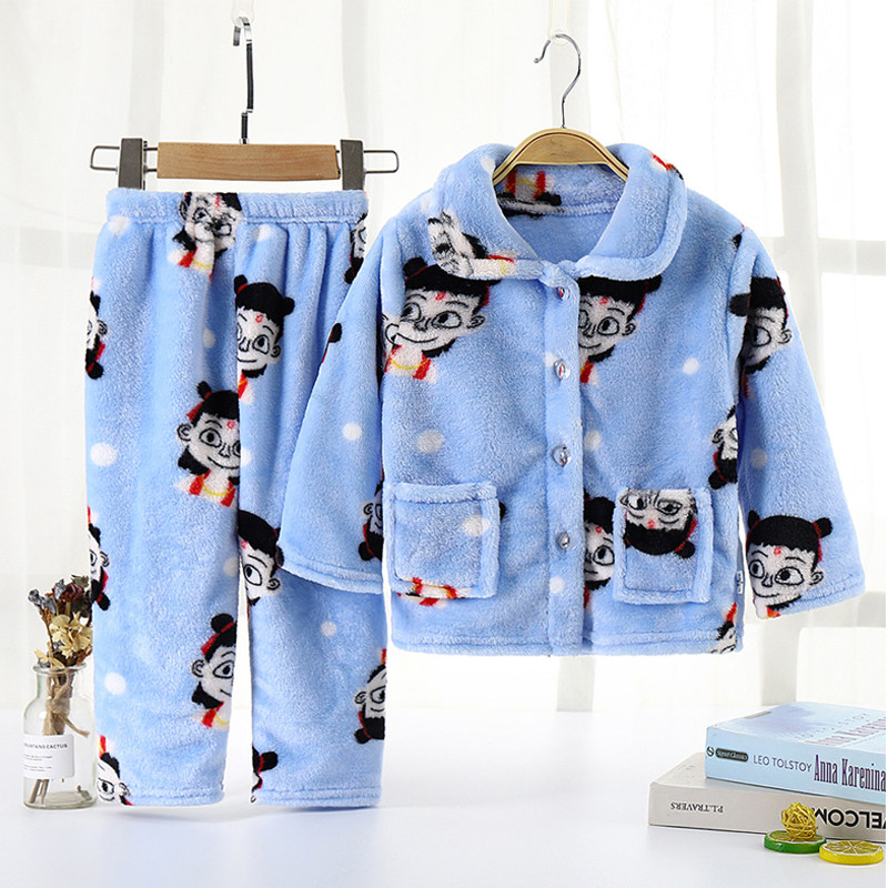 Демисезонная детская удерживающая тепло пижама, фланелевый комплект подходит для мужчин и женщин, коралловый бархатный лонгслив, увеличенная толщина